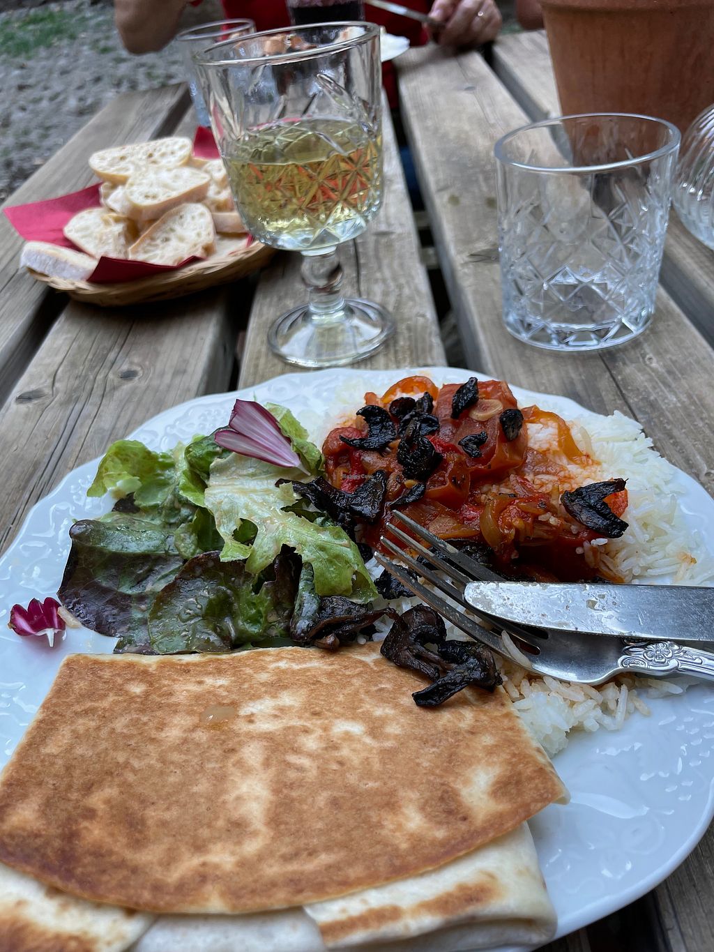 Salad (with wonderful dressing and lettuce fresh from the garden), ric…