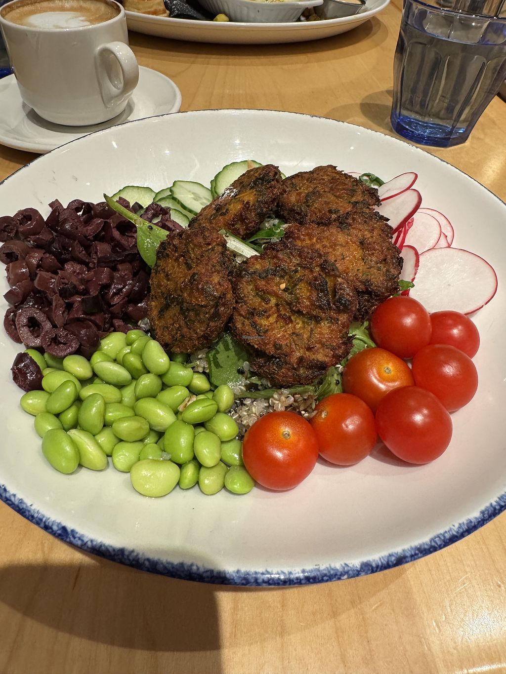 I also had lunch there one day and ordered the Cauliflower and Oat Falafel bowl with no cheese to sauce. It was a decent lunch. I’ve attached a photo.