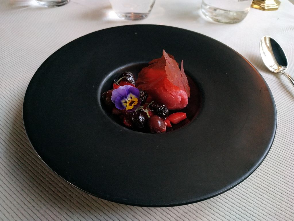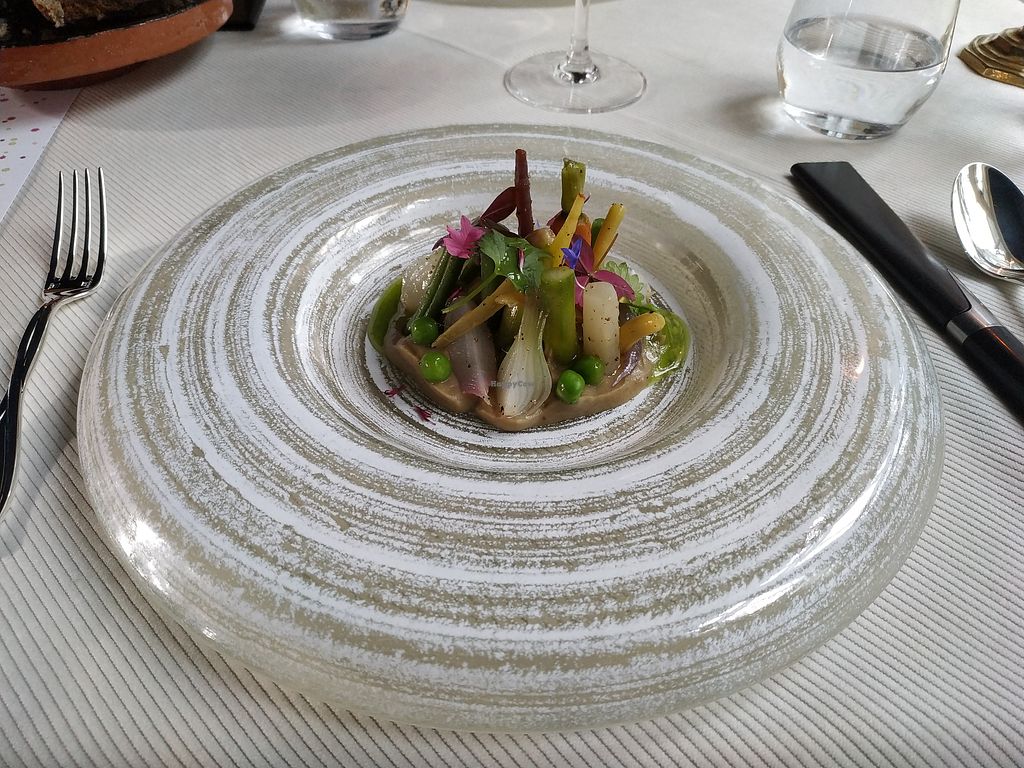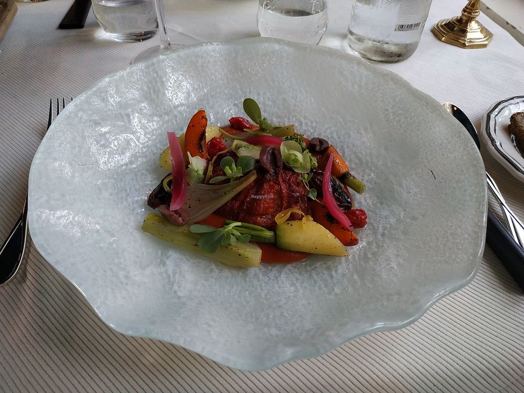 Serves meat, vegan options available. Michelin star restaurant offering a vegetarian menu that can be made vegan upon request.