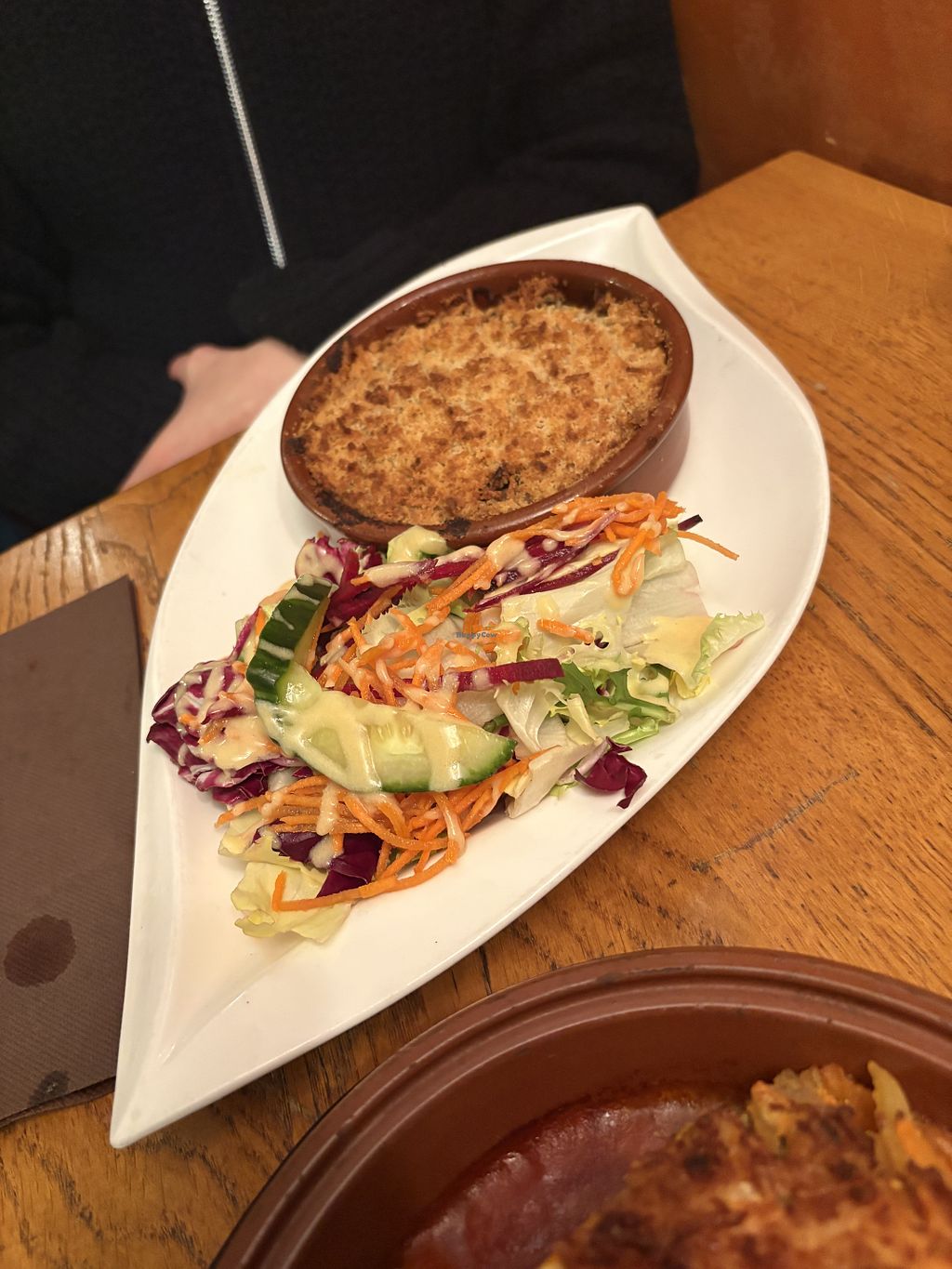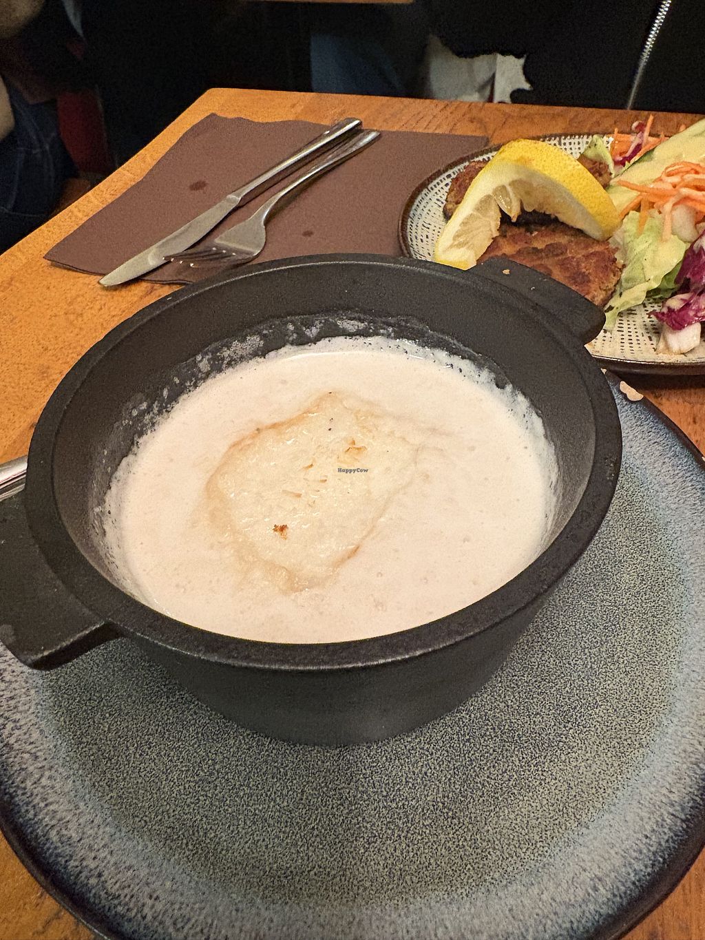 Read moreWe had chickpea-based faux gras to start, and then I chose a main of seitan, raw vegetables, cooked vegetables, and potatoes. It ended up being as random as it sounds. Kinda like what you’d get from a restaurant with nothing vegan on the menu that just whips something up at your request. My dining companion didn’t like her gratin much more.