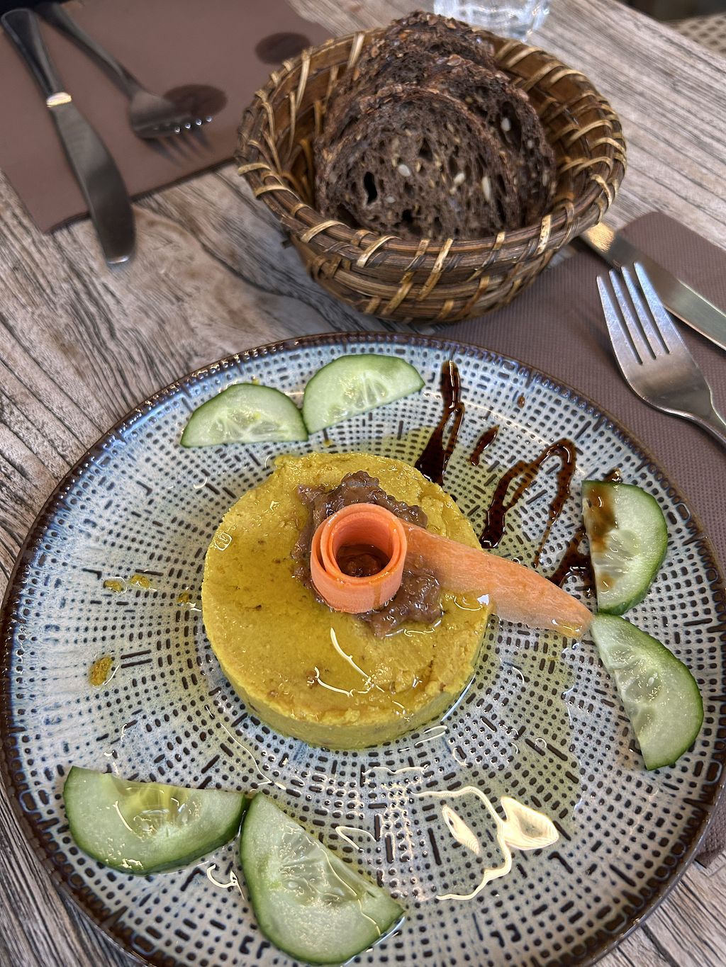 Das Essen war super. Ich hatte einen veganen Kartoffelgratin welcher einfach großartig geschmeckt hat. Besonders gefallen an dem Restaurant hat mir die Lage. Das Restaurant befindet sich in einer ruhigen Nebenstraße und ist sehr gemütlich.
