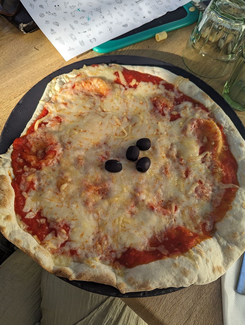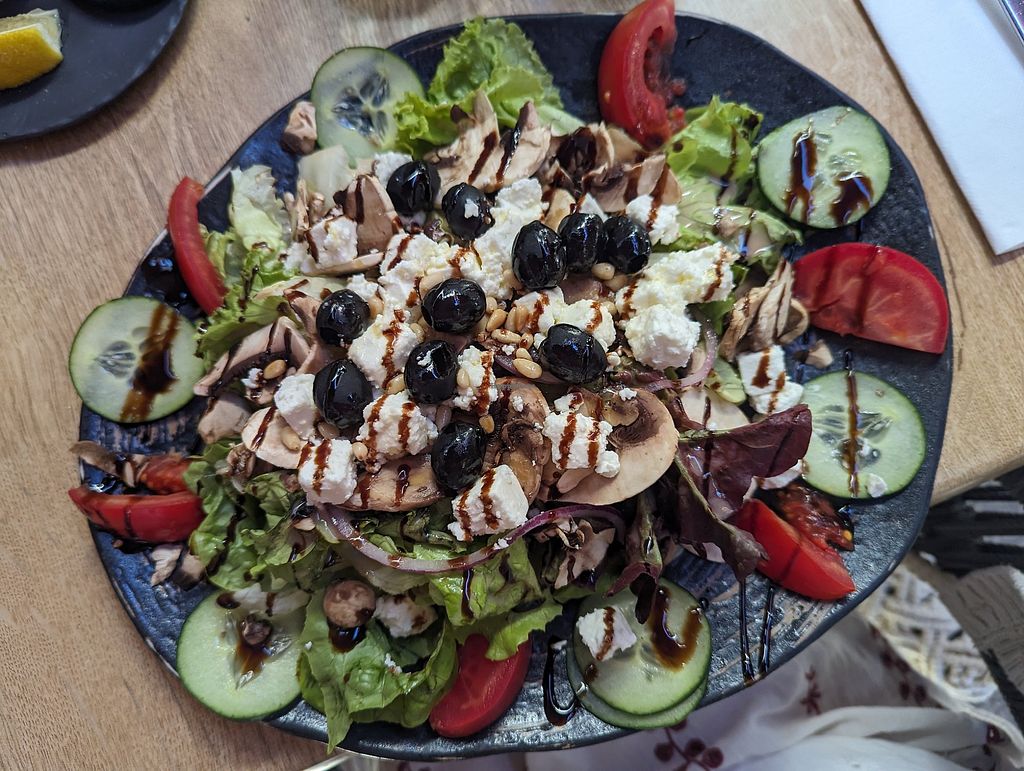 Loved the vegan pizza & salad. Staff were vegan-friendly & helpful to special requests. Lively atmosphere & reasonably quick service considering we were there on a Saturday night. Loved the beautiful, large, shady dining terrace. The restaurant was busy & clearly very popular. We booked early to ensure we’d get a table. Recommended highly.