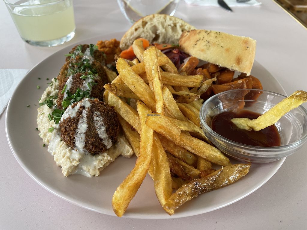 Falafel plate: homemade pita/falafels/hummus/carrot-persil salad/fries
