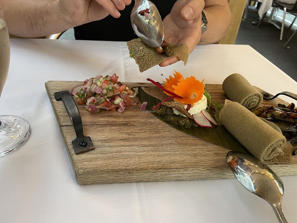 Friendly service, nice ambiance and delicious vegan options. I have been several times and usually get the vegan tasting menu, it has 5 different dishes and lots of Ethiopian bread.