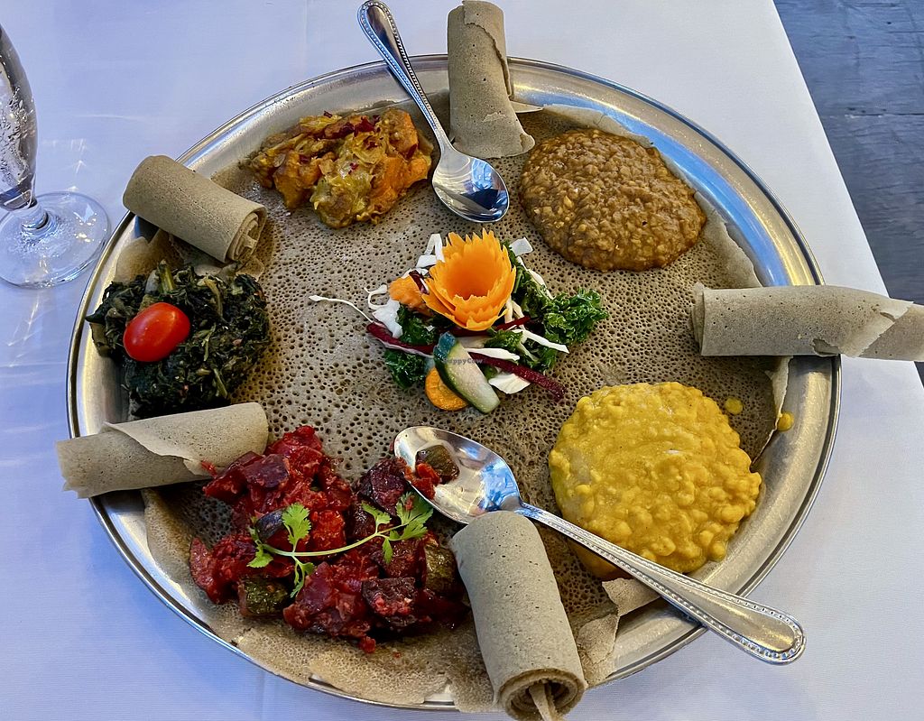 Great Ethiopian food in the heart of Montreal. The vegan sampler for two is the perfect way to try a variety of the flavors they offer. From the entrees the hummus with eggplant was absolutely amazing.