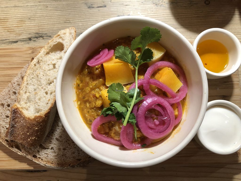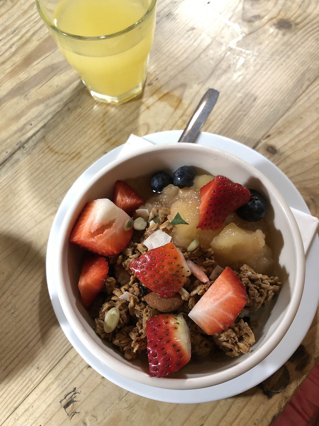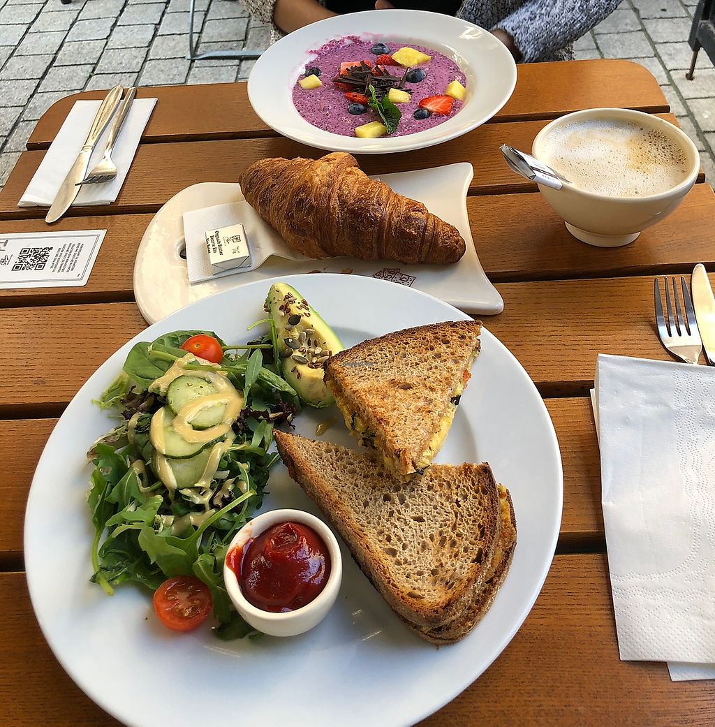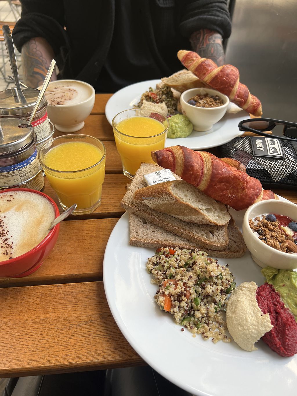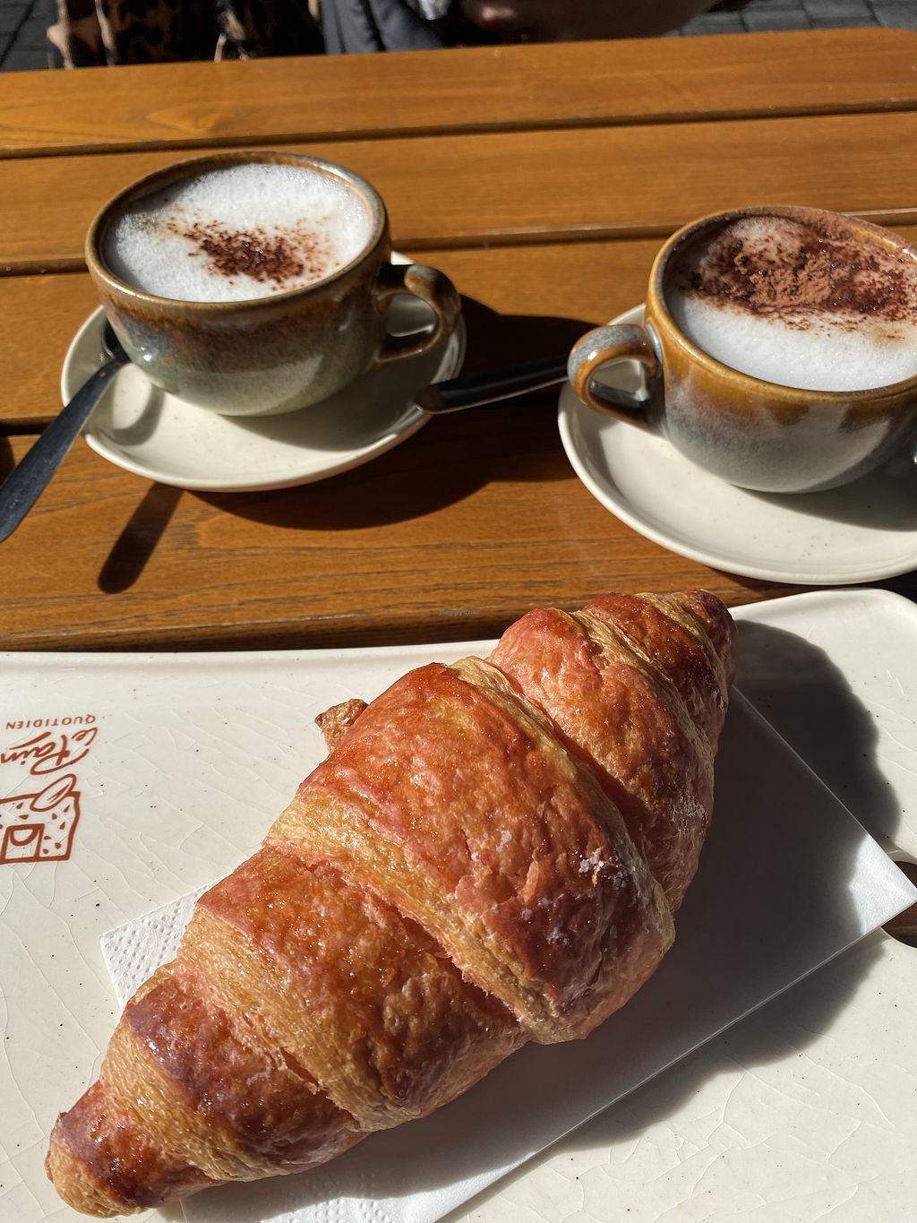 Croissant Hibiskus und Cappuccino mit Hafermilch