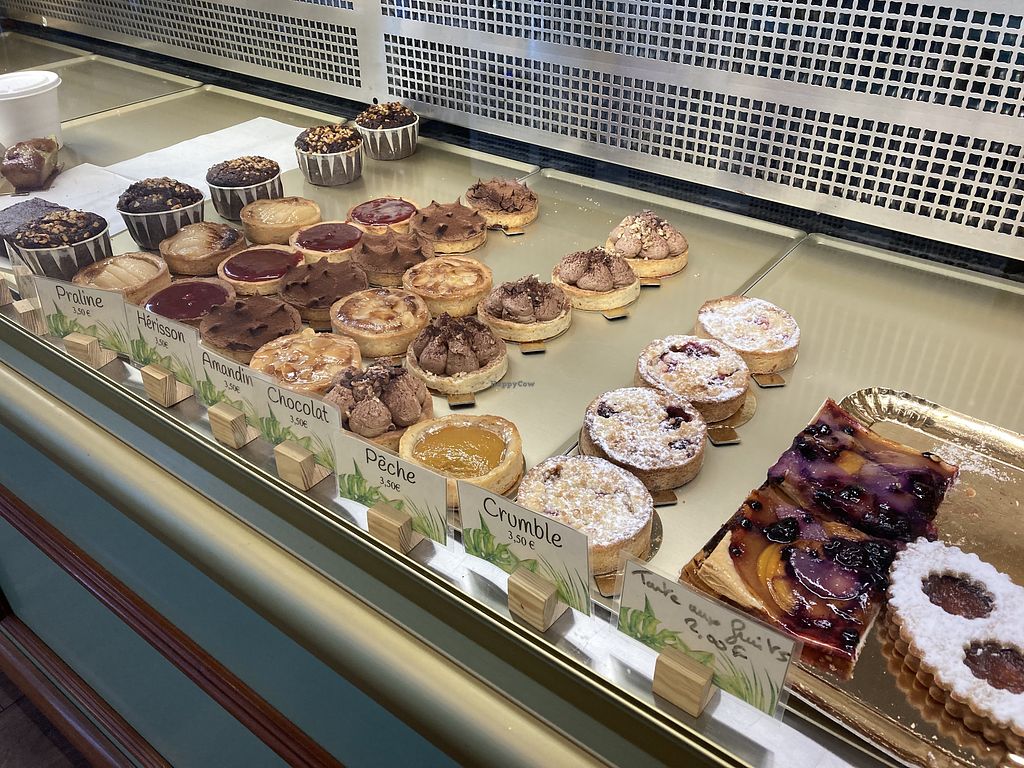 Excellent vegan bakery. They offer cute little vegan cakes (the little fancy ones you see throughout French bakeries) and vegan croissants. Get there early if you have your heart set on a certain item. I got there at 10AM and they were nearly sold out of their croissants (I bought the last three).
