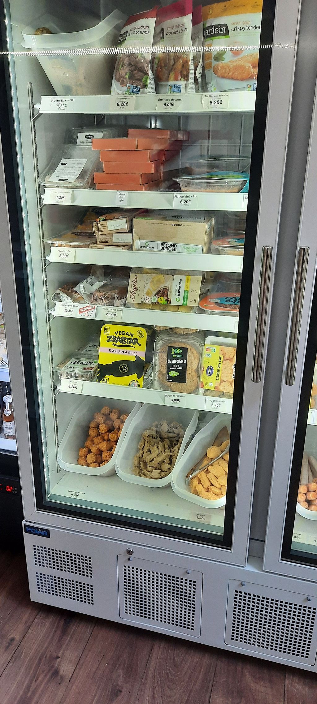 This place is Awesome!!! They carry beyond meat as well as some interesting cheeses from Holland! Also a beautiful selection of pastries that look very traditionally Lyon! Looks like they sell out so go in the AM! Will recommend to any traveling Vegan😄