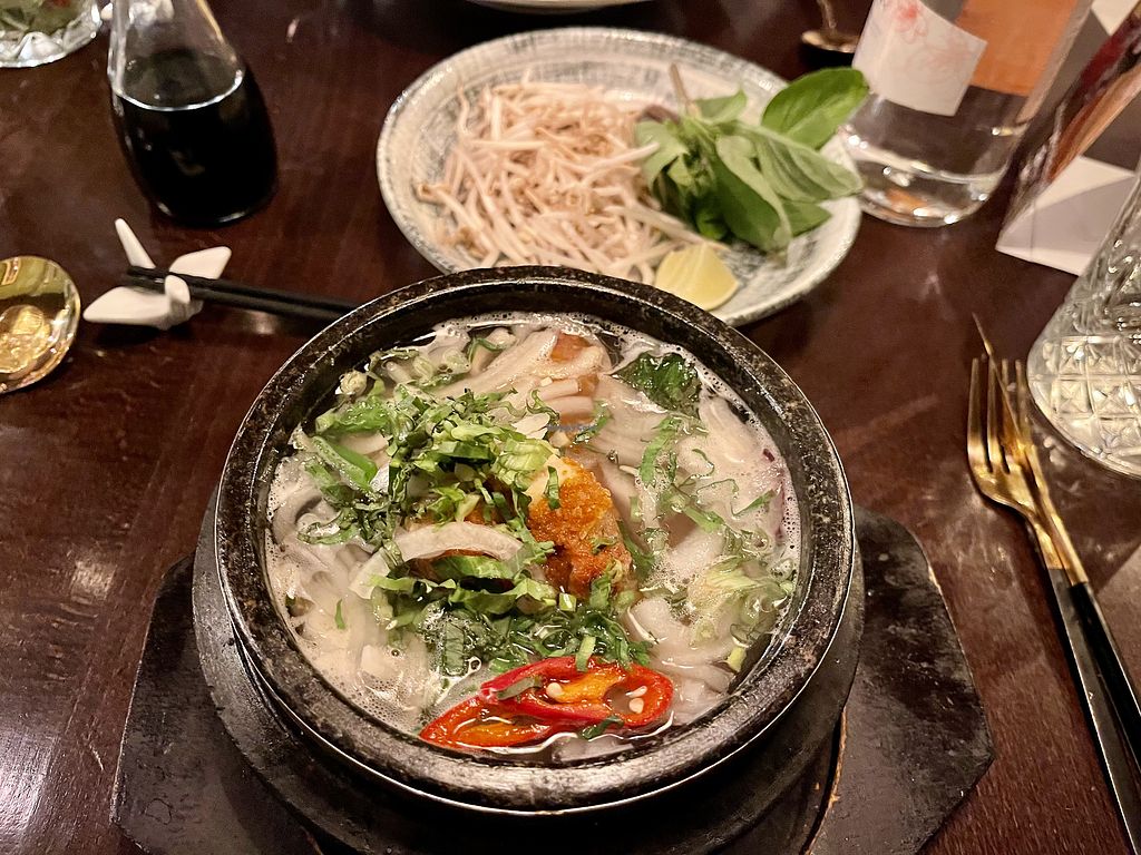 Delicious food and the server made me a special mocktail. Excellent service and ambience. A casual but elegant meal. I will definitely return. And reasonably priced. I had the vegan Banh Mi with delicious fries (I know—not Vietnamese but crispy outside and pillowy inside) and my friend had the vegan Pho bowl. Equally delicious.