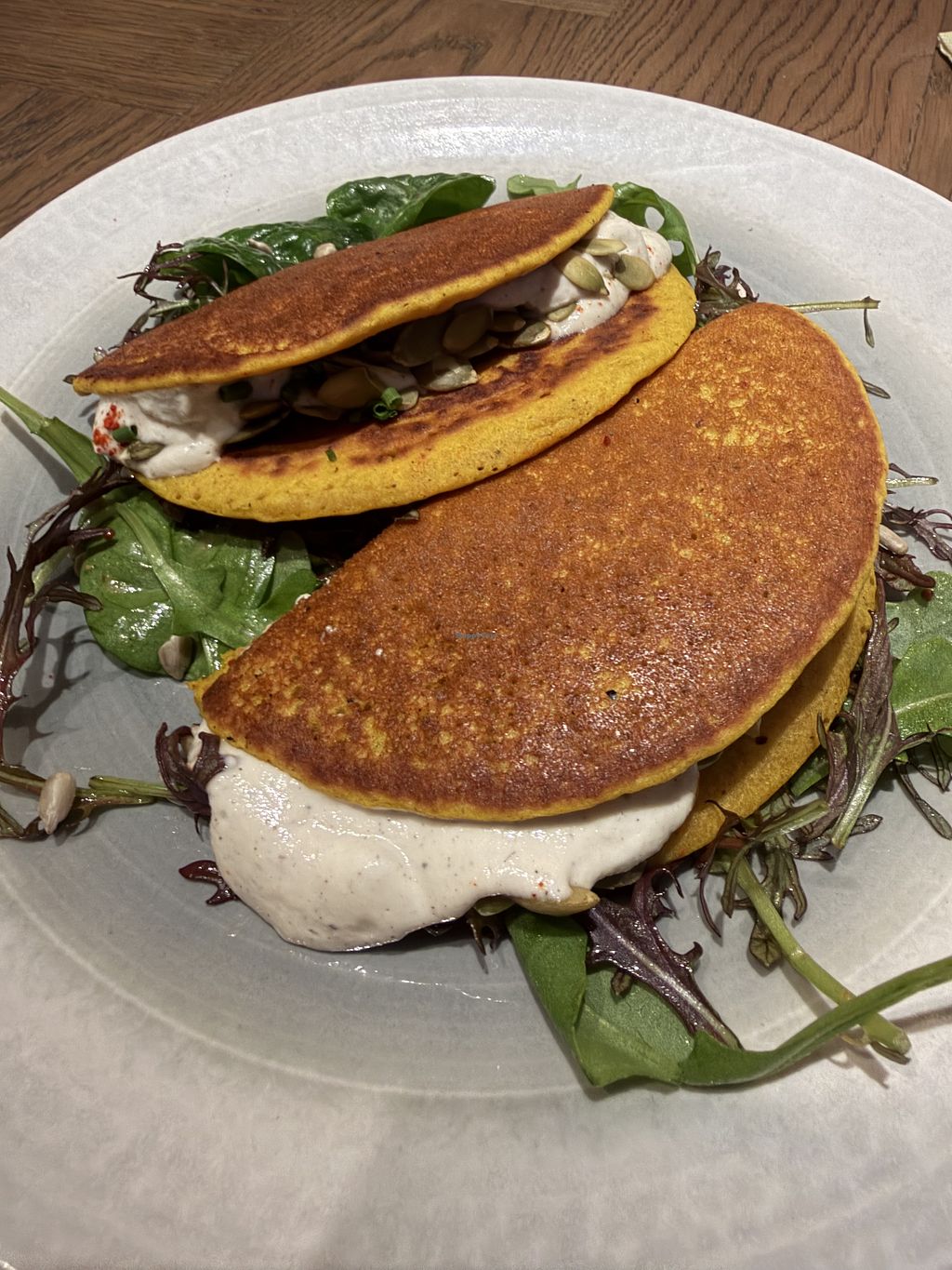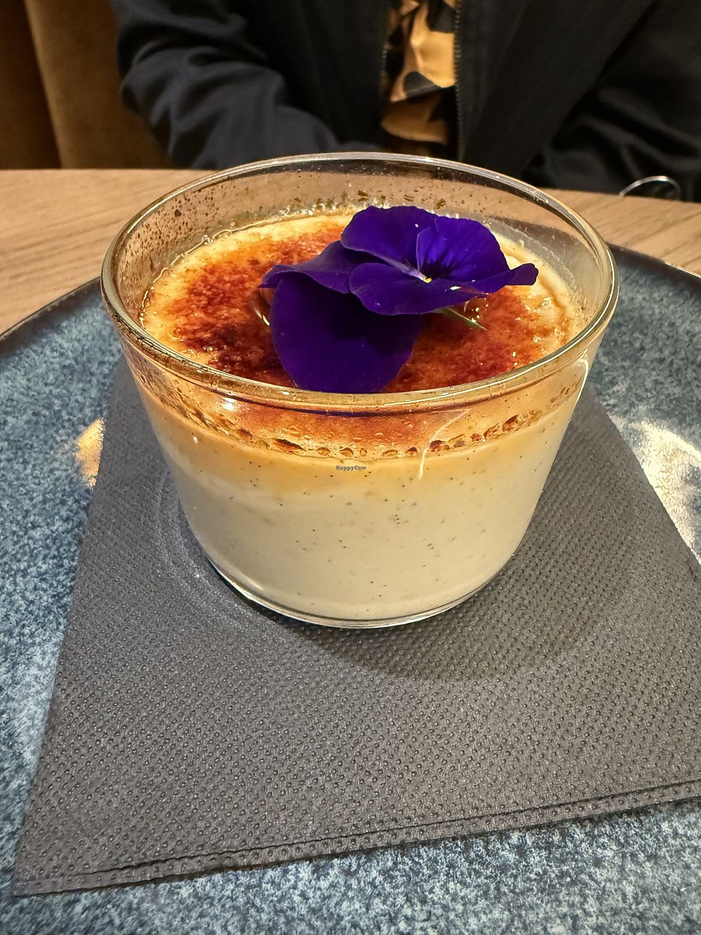 We had a very lovely dinner here! Everything is vegan and all the food we had was delicious. I especially enjoyed the savory chickpea pancake appetizer. The creme brulee was a bit disappointing, I found it lacking in flavor and it was served in a deep cup, so there wasn’t much surface area for the brulee top. We made a reservation for the first dinner seating, but they let us stay through the second seating, which was very nice.
