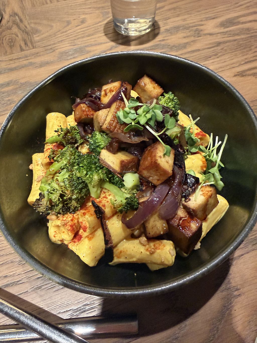 Had dinner here last night and it was amazing. The atmosphere is lovely, slightly sophisticated, not as hippy dippy as vegan places are where Im from. Its cozy and beautiful, the staff are so friendy and the food delicious and FILLING. I had sesame tofu, hazelnut mashed potato and then pancakes - was SO full.