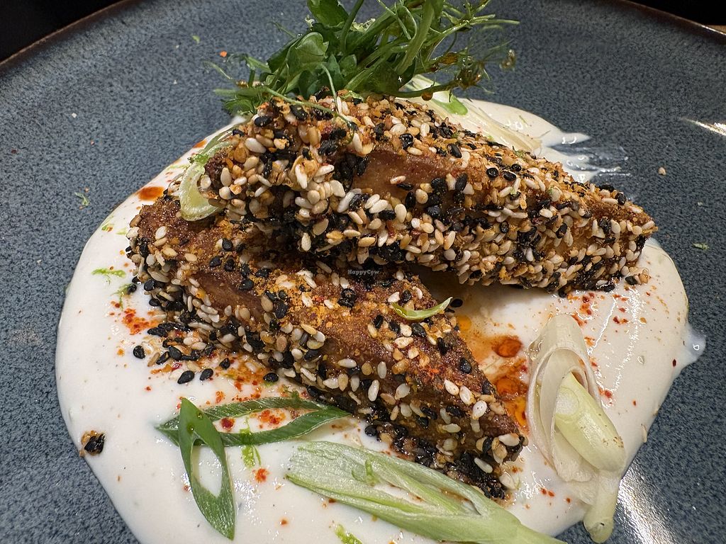Sesame marinated tofu… on a creamy/tangy vegan yogurt!