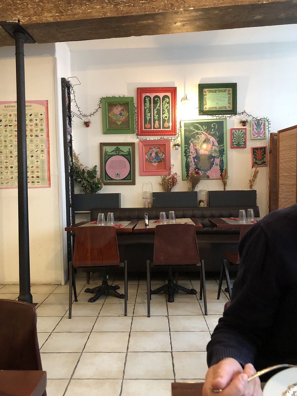 A welcoming place in an interesting area of Paris. It was nice to be able to order vegan versions of some traditional foods - I had a buckwheat pancake (I think these can be vegan anyway but aren't always). The shared starter of various pâtés was excellent - the chickpea one really tasted of chickpeas. The portions here are generous but not excessive so I was able to fit in a dessert (a berry crumble with chestnut flour in the topping). We had been to this restaurant in its earlier (Rambuteau) location about 15 years ago, so were delighted to find that standards remain high! Front of house staff are friendly and enthusiastic.