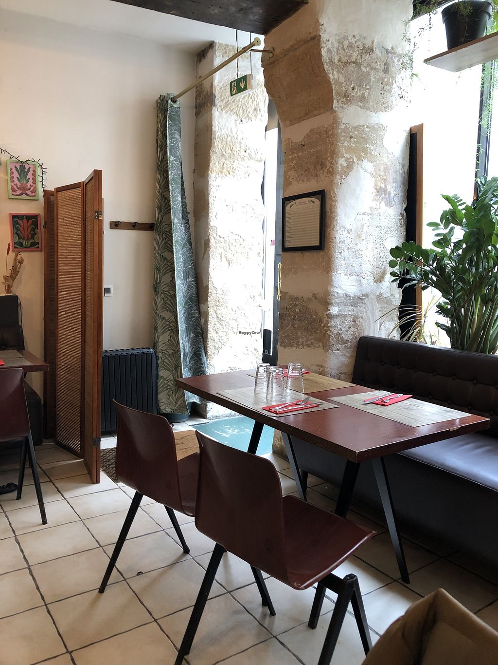 Pros: I really liked the rustic atmosphere of this place (although as in many Paris restaurants be prepared to be on top of your neighbors). I went twice and tried the seitan bourgignon and the lasagna and both were delicious. We had good service here, too. I'd say as the vegan places in Paris go this one comes possibly the closest to replicating classic French cuisine, for those of us who want to partake in local cuisine but not the meat and dairy.