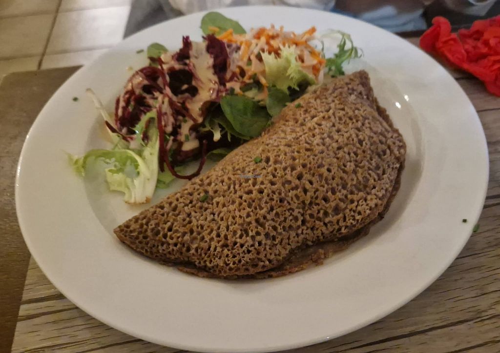 A welcoming place in an interesting area of Paris. It was nice to be able to order vegan versions of some traditional foods - I had a buckwheat pancake (I think these can be vegan anyway but aren't always). The shared starter of various pâtés was excellent - the chickpea one really tasted of chickpeas. The portions here are generous but not excessive so I was able to fit in a dessert (a berry crumble with chestnut flour in the topping). We had been to this restaurant in its earlier (Rambuteau) location about 15 years ago, so were delighted to find that standards remain high! Front of house staff are friendly and enthusiastic.