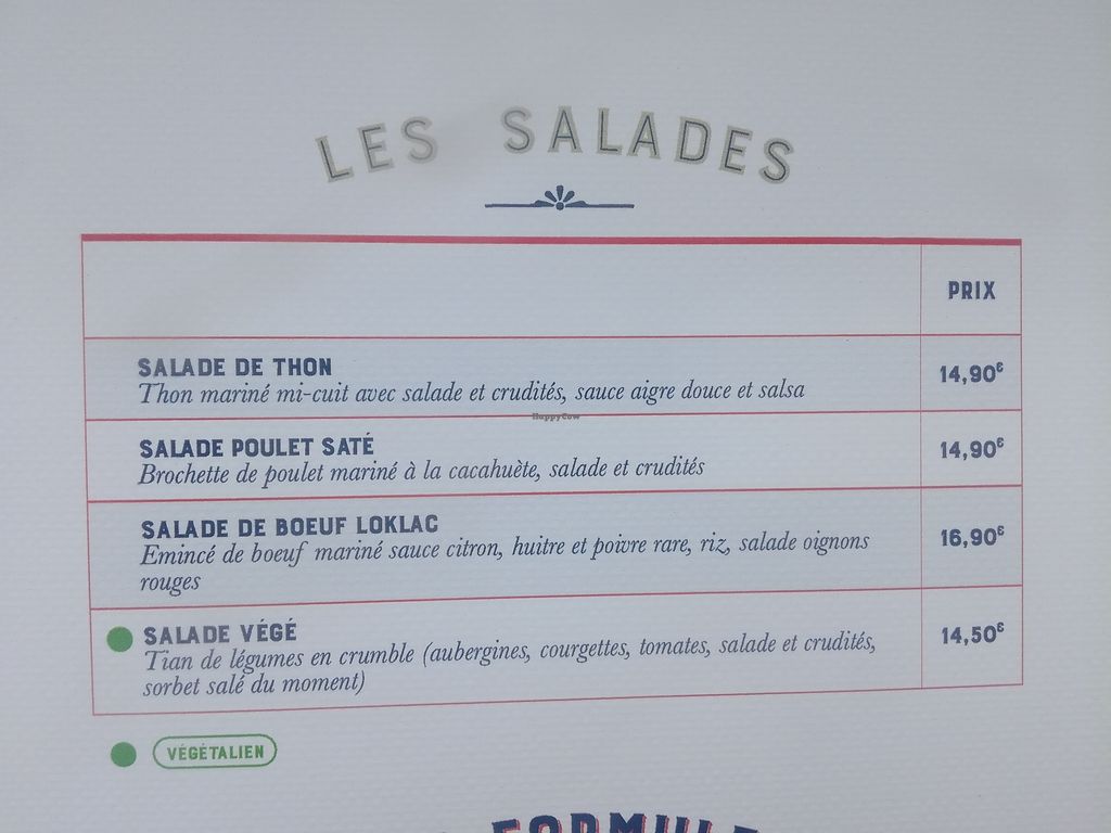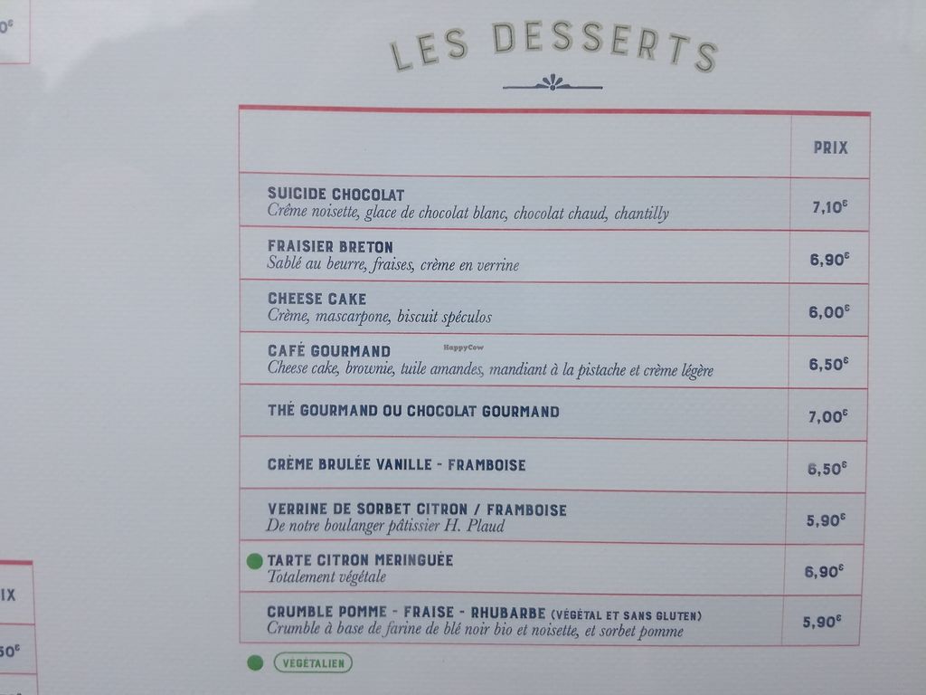 Cons: Pas de plat végétal mais seulement un dessert vege