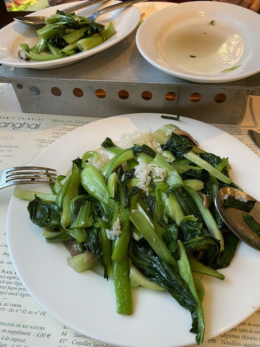 We kozen voor chinese groenten met champignons, maar er waren zeer weinig champignons en veel paksoi en dat was het. Er zat witte rijst bij. We hadden er eigenlijk nog tofu bij moeten kiezen, maar werden daarover niet geinformeerd. Voor veganisten dus erg weinig keus. Verder waren de groenten erg zout. Halve liter water kost 5 euro. Beetje groenten met rijst kost 12 euro.