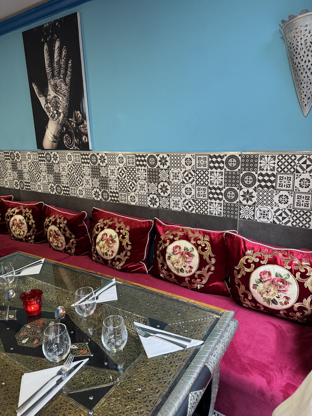 Read moreThe table and interior were nicely decorated with arabic patterns, even though parts also looked like a cheap bistro.