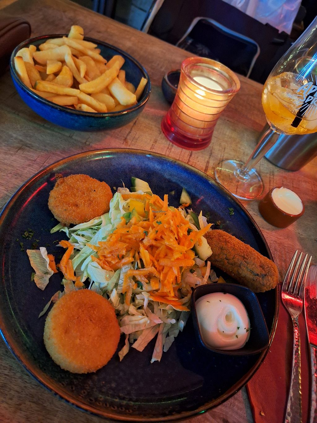 Steak seitan pepersaus met frieten, veganaise en warme groenten