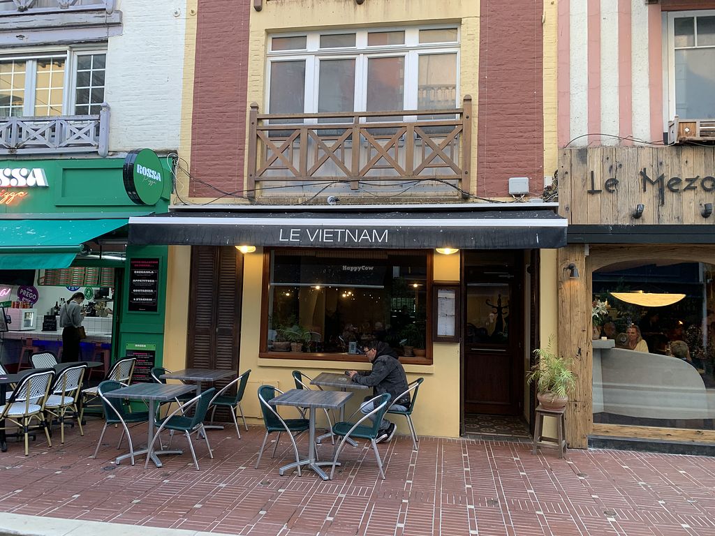 Serves meat, vegan options available. Vietnamese restaurant with vegan choices. Menu choices are clearly labeled and include vegetable curr, sauteed vegetables, and coconut balls with soy. Apple fritters are vegan but needs to be ordered without the complimentary ice cream and without the caramel sauce. Open Mon-Thu 18:30-23:00, Fri 11:30-14:00, Fri-Sat 18:00-23:00, Sun 11:30-14:00.