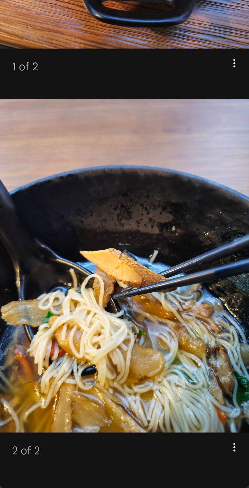 Vegetarian restaurant serving breakfast and zi char dishes like claypot fish soup, curry hotpot, yam ring, chicken rice, and char kway teow. This branch est. Oct 2020. Open Mon-Sun 11:00am-9:30pm.