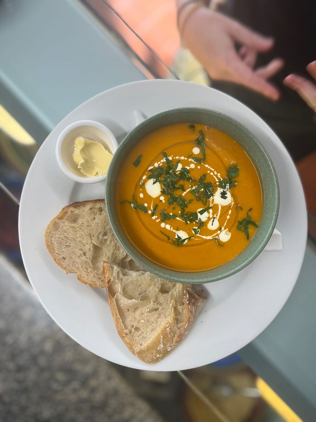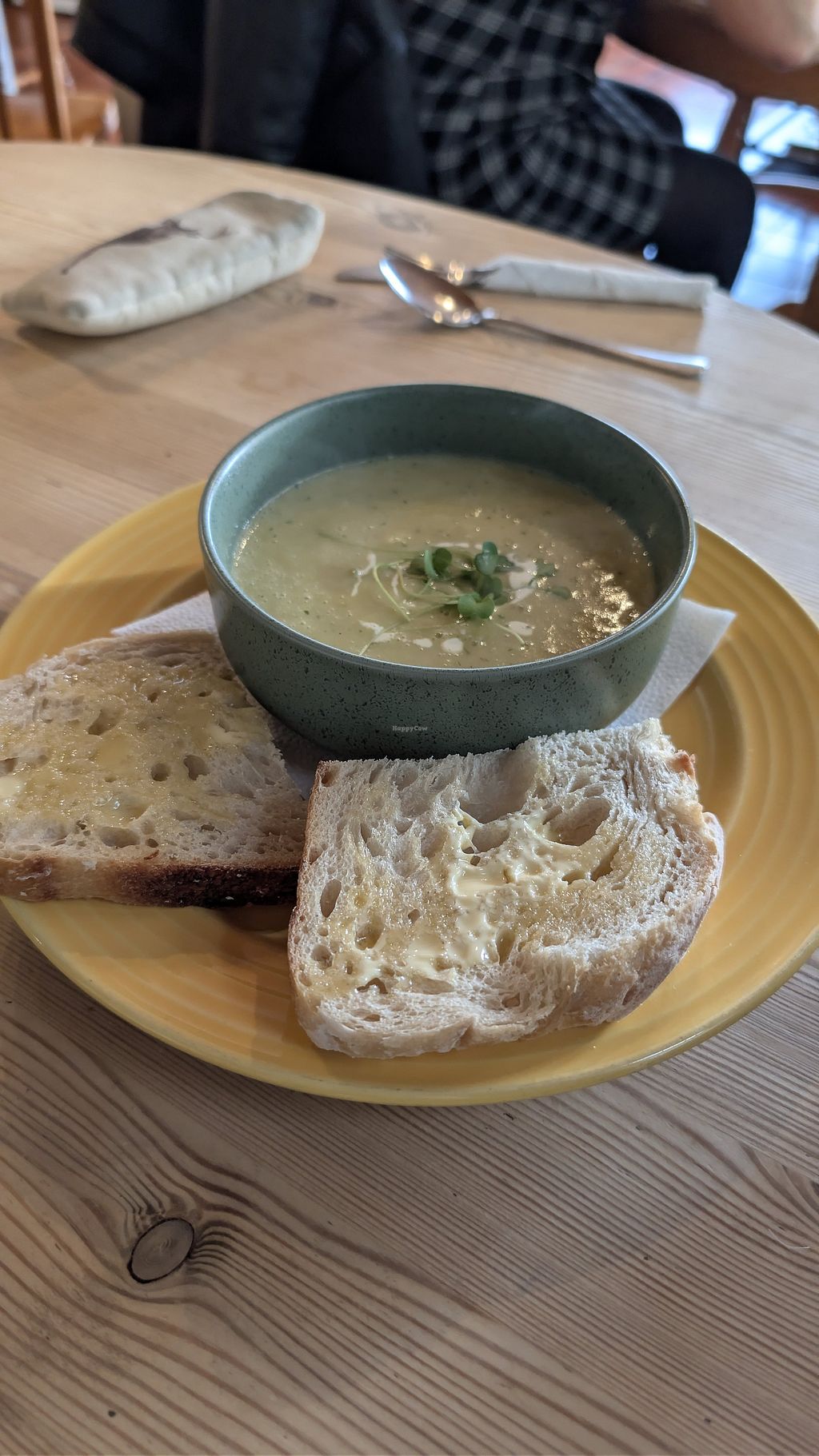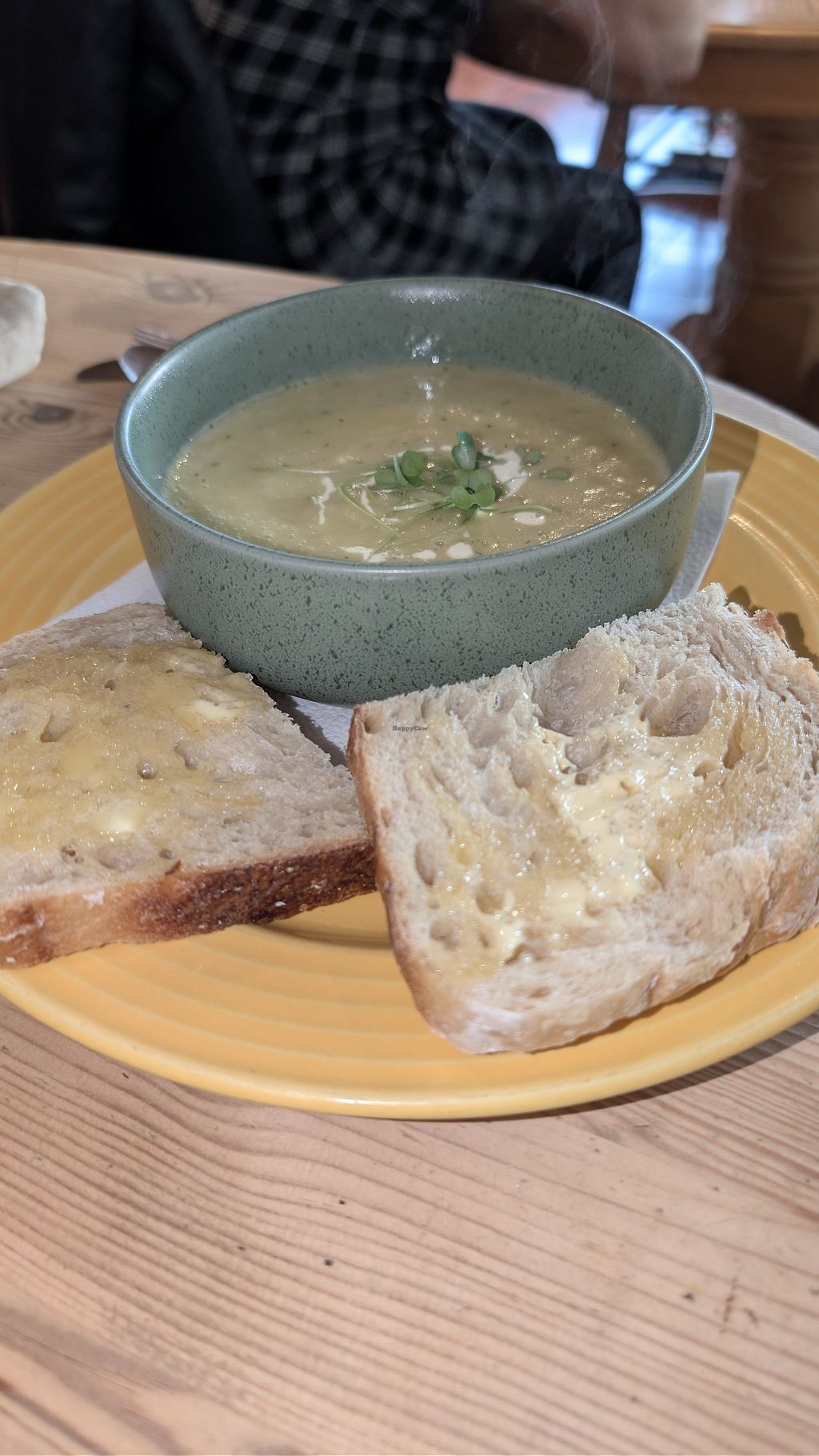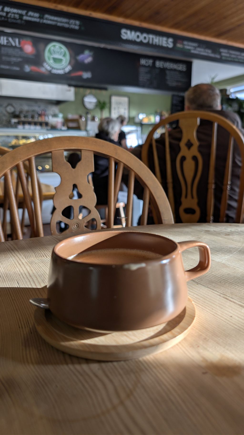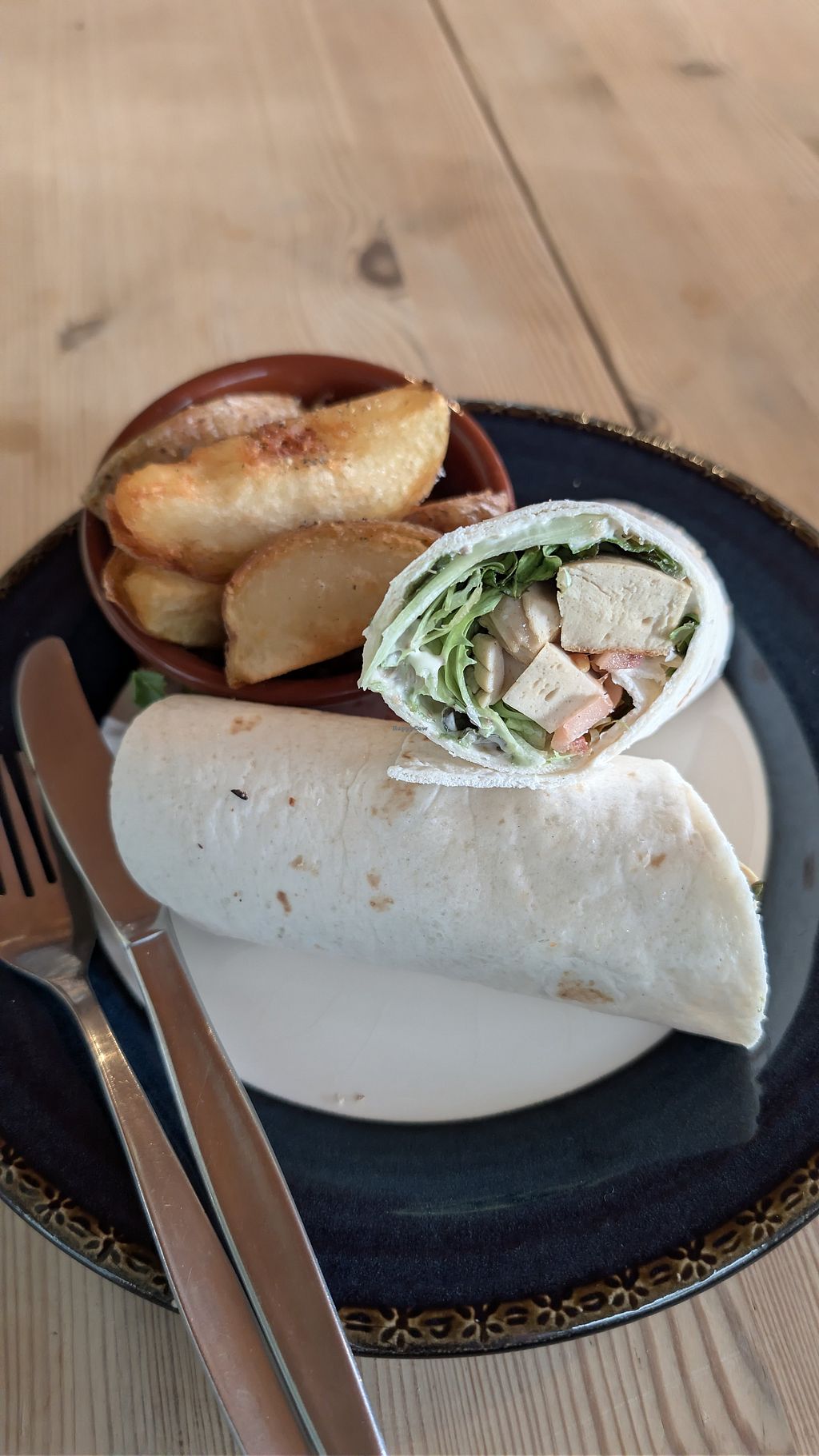 So pleased we found this place. Great spot and easy access and parking. Great menu with plenty of options to choose from. We had the cream of celery soup with sourdough off the specials board and seitan Caesar wrap with chips. Could not fault the food at all. We came away with two sausage rolls which were also delicious. Two very happy customers.