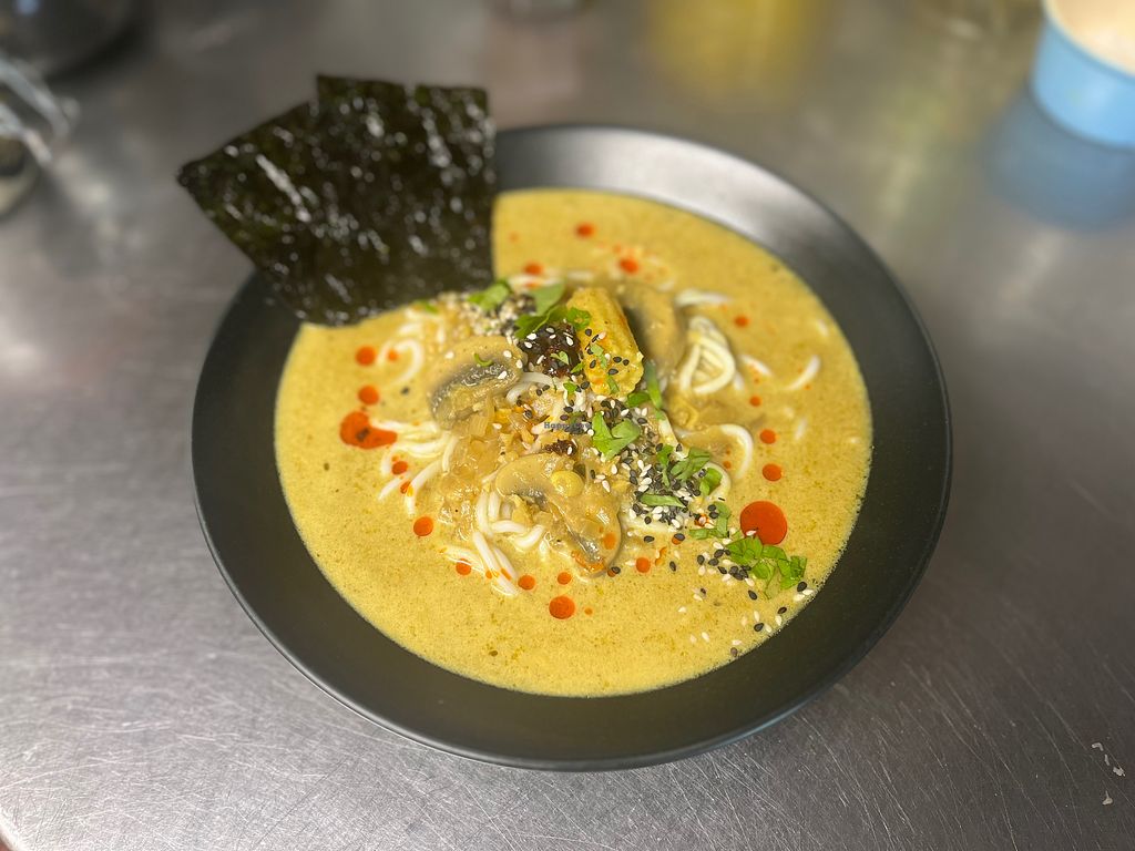 Small vegan café serving plant-based food and coffee. Menu items may include pastries, salad, vegan frittata, soup & bread, ramen, muffins and more. Open Mon-Sat 08:30-17:00. Closed Sun.