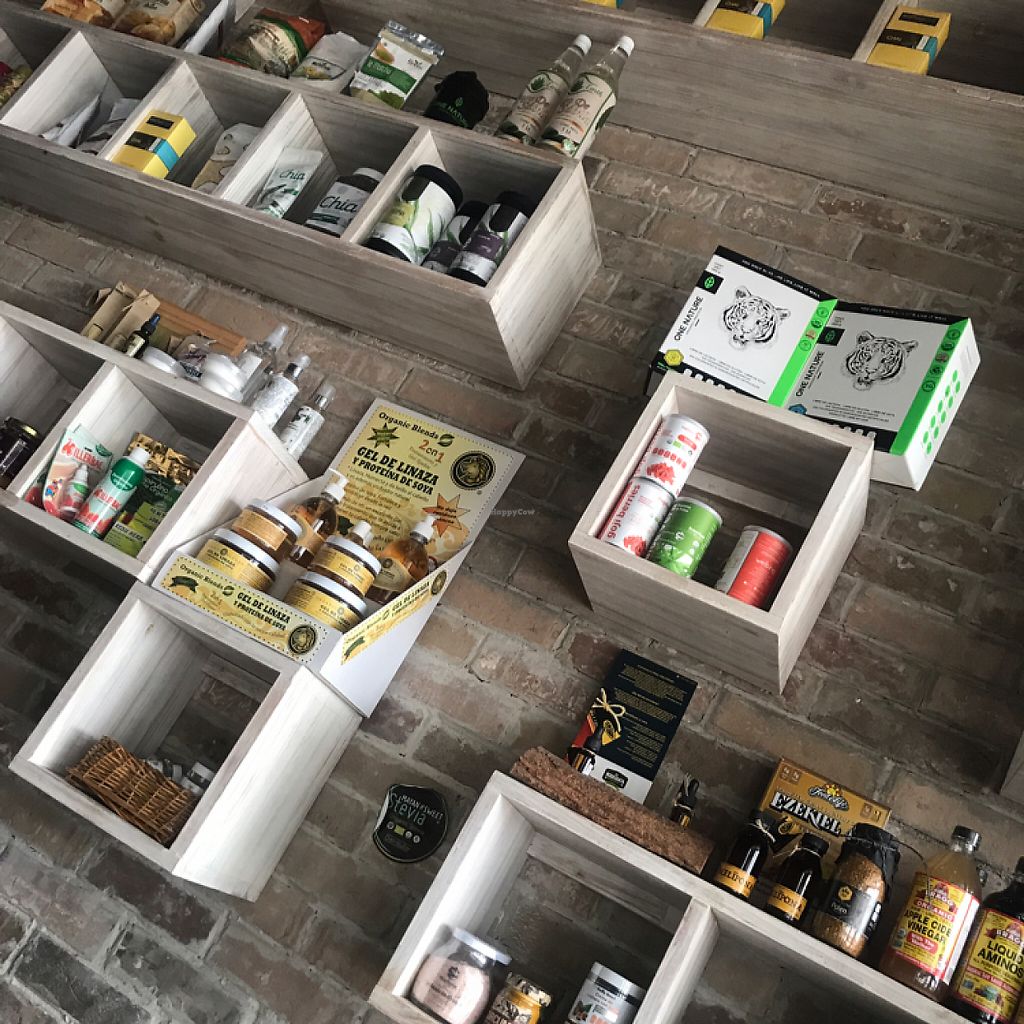 Serves meat, vegan options available. Organic market and vintage bar with clearly labeled vegan choices. Also has paleo and gluten free items. Reported closed, Aug 2018.