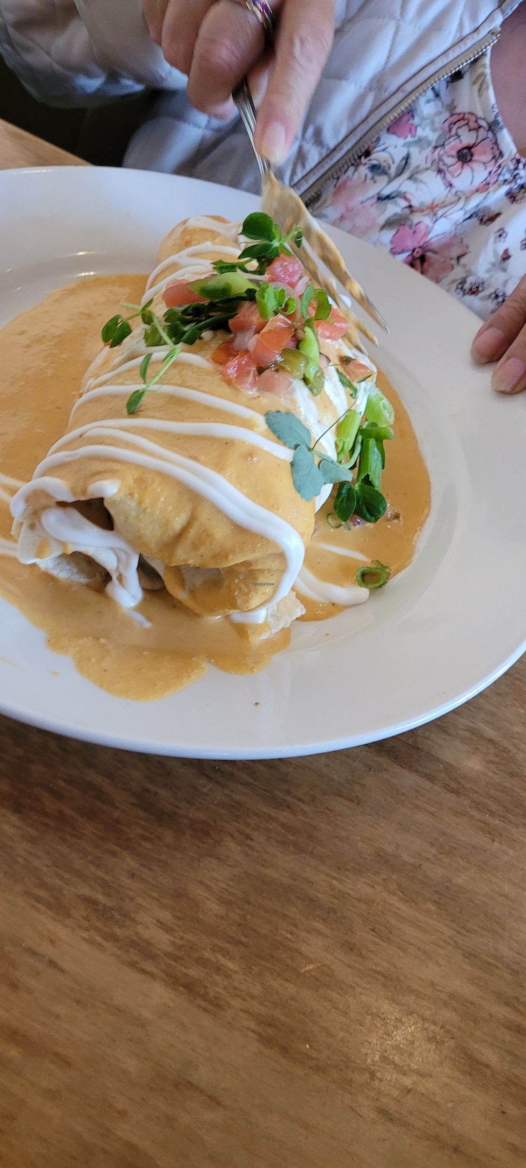 We got the smothered burrito (which picky, nonvegan mother enjoyed), the pancake breakfast (pancakes were tiny, "bacon" was not at all like bacon, and the scramble was completely tasteless!!!), and the burger, which tasted good.