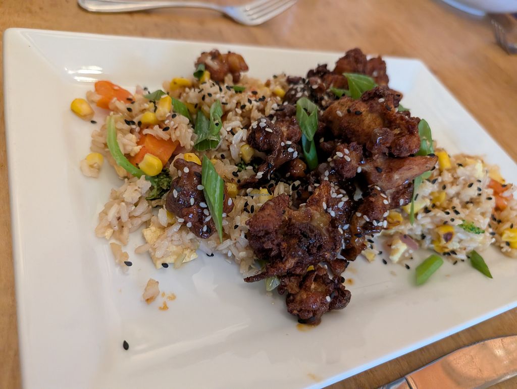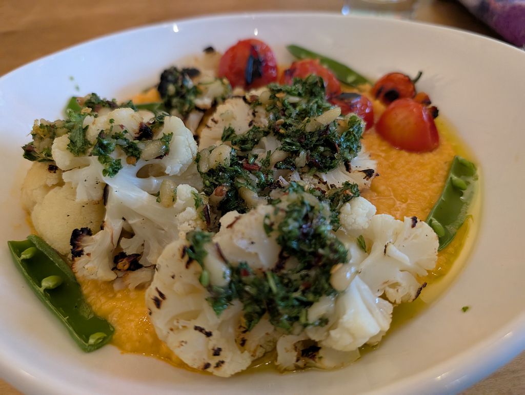 We were both delighted with our choices, the Jamaican Jerk Tempeh and Orange Cauliflower. Beautiful and delicious with lots of flavor but no overwhelming sauces. Dessert was good too. Will come back!