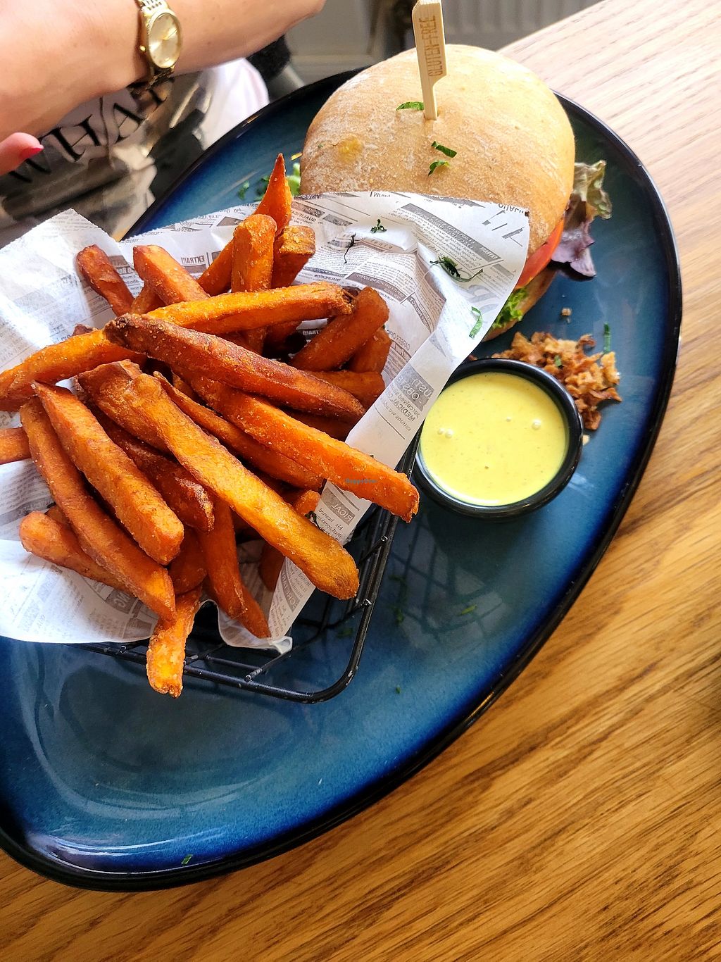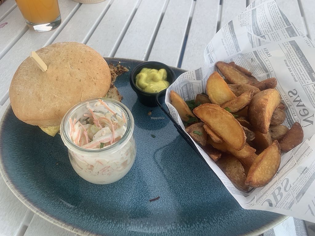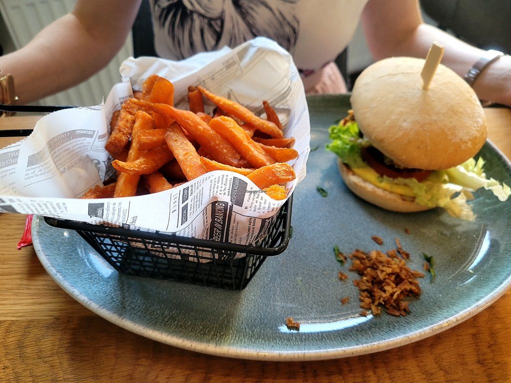 Essen war super: sowohl der Smash Burger (Fleisch) als auch der vegane Burger (leider nicht wie im Menu geschrieben mit Beyond Meat Patty, sondern einem Kürbis-Süßkartoffel - dafür dann doch sehr teuer) mit Kartoffelspalten, Süßkartoffelpommes und Coleslaw! Auch die Vorspeise war super lecker.