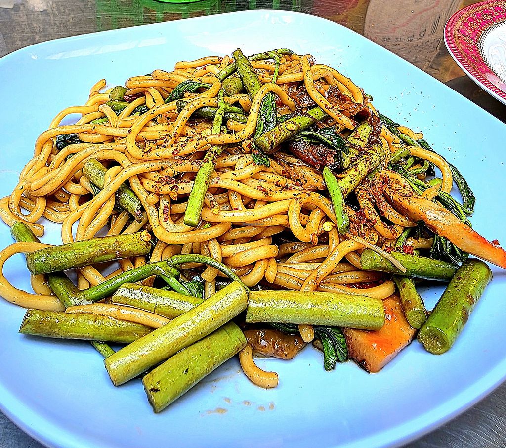 I usually hit this spot when I am in Bangkok. Most recently I had the Mee So Ba Pad Kra Ched. It was very tasty. The portion was OK, but you might want a side dish as well if you are hungry. I love the kind, quiet, no frills vibe of this place. It is a basic streetside diner and is run like one. Also, it is fully vegan so you can confidently order anything on the menu - there is a lot to choose from.