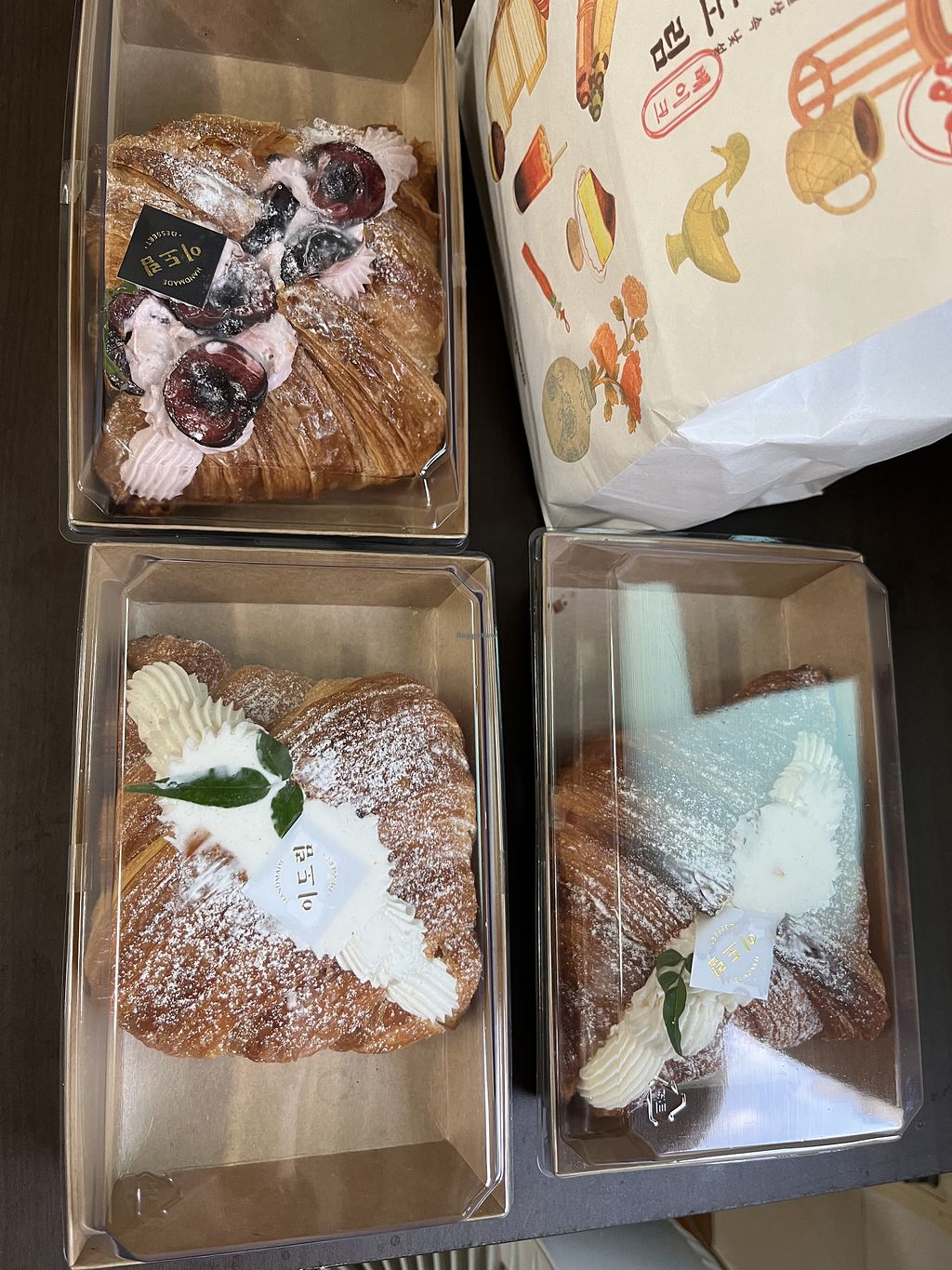 We ordered 2 tiramisu, 1 strawberry cream croissant, 3 coffees
