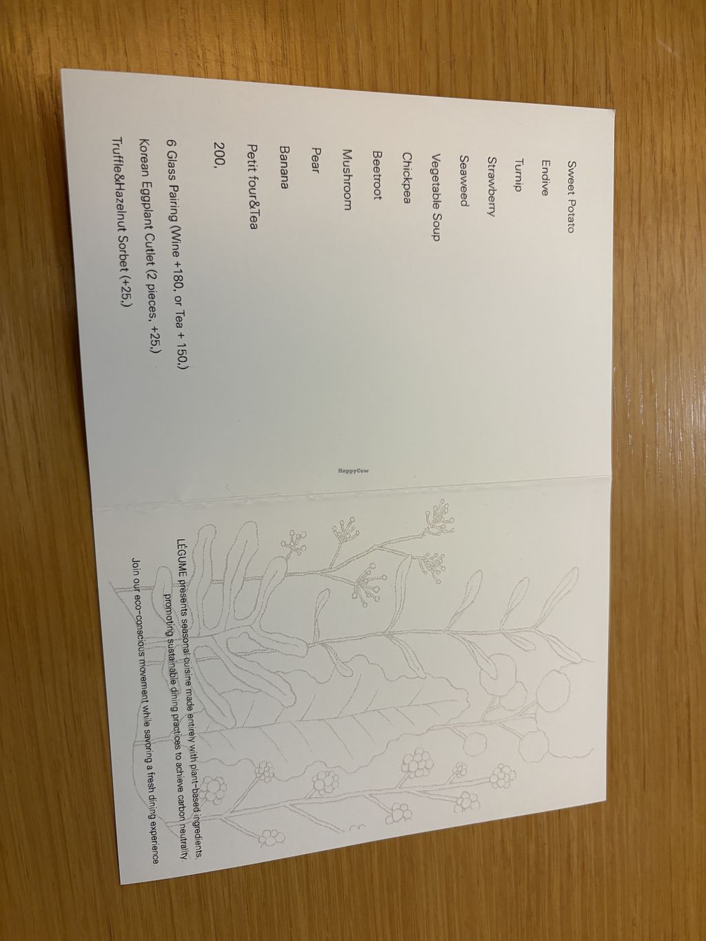 The first thing to say about Legume is that this is not a cheap restaurant. Especially if you include a wne pairing and additional courses offered. The second thing to say is that, IMHO, it is absolutely worth the money you pay. The food is fabulous and the service exemplary. My partner and I went on a Satuday evening and enjoyed a great meal and left with smiles on our faces. The restaurant is small (probably only around 20 covers) and located in a small shopping mall near Sinsa metro. I would recommend you make a reservation.