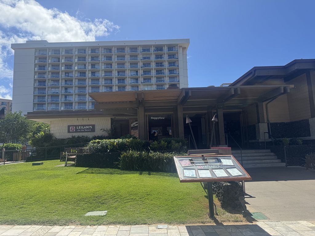 Serves meat, vegan options available. Seafood and meat restaurant with bar, but on the menu is a roasted sweet potato shaped like a steak and served with vegetables, coconut creamed luau leaves, and macadamia nuts. Oceanview dining. Due to the fire in Aug 2023 many Lahaina businesses are closed or have moved. Please help HappyCow by sending in an update as needed. Open Mon-Sun 11:30am-9:00pm.