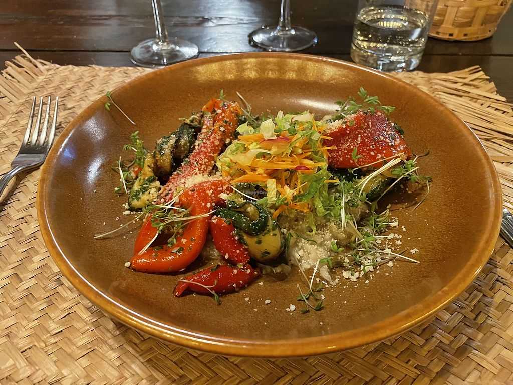 Serves meat, vegan options available. European restaurant in the Red Palm Village resort with a changing menu. Offers vegan dishes such as beetroot tapenade, lentil & smoked tofu stew, mushroom & grilled vegetable risotto and sorbet with fruits. Reservations required.
