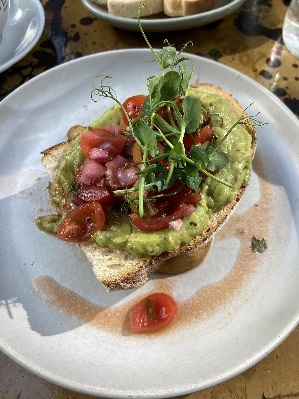 They don’t have a ton of options, but they had several more than other places in the area for a lunch spot. We had the shakshouka and the avocado toast, which were both delicious. They also had a mushroom & beans on toast option and a chia seed & fruit pudding. This was a cute place with blankets draped all over in case you were chilly which gave it such an inviting atmosphere.
