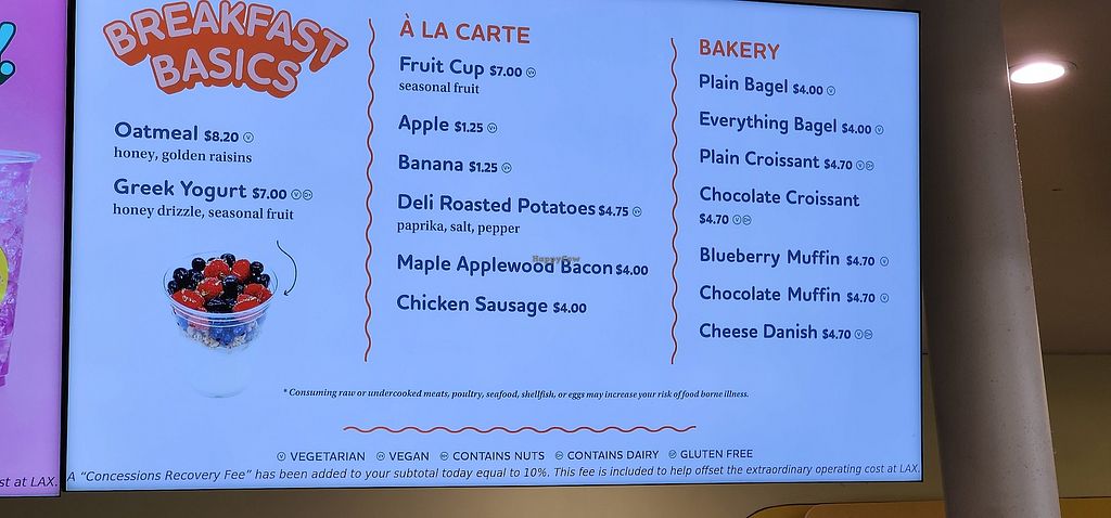 Rude staff, but there are a few clearly marked vegan options at this location in Terminal 5 at LAX.