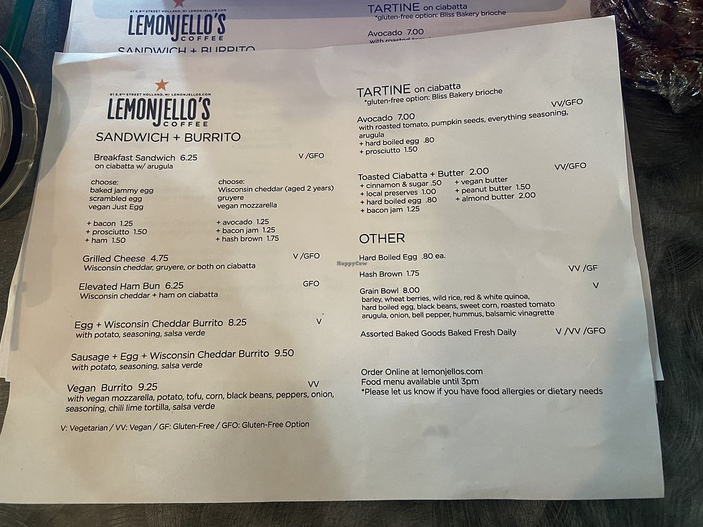 Read moreLemonjello’s was packed with people in the young, hip cafe when I visited. They boast a selection of vegan coffees, pastries, and some food choices on their menu. I tried the Vegan Almond Cookie that was crisp and nutty. The vegan muffins looked a little deflated, but I think it was just a bad patch for the day. The number of vegan options in the not-so-vegan-friendly town of Holland was a welcome surprise.