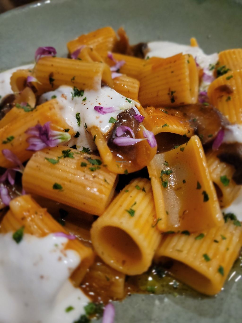 Serves meat, vegan options available. American restaurant offering vegan choices that include fried tofu "chicken" with vegan basil ranch and mushroom ragout with mezzi rigatoni.