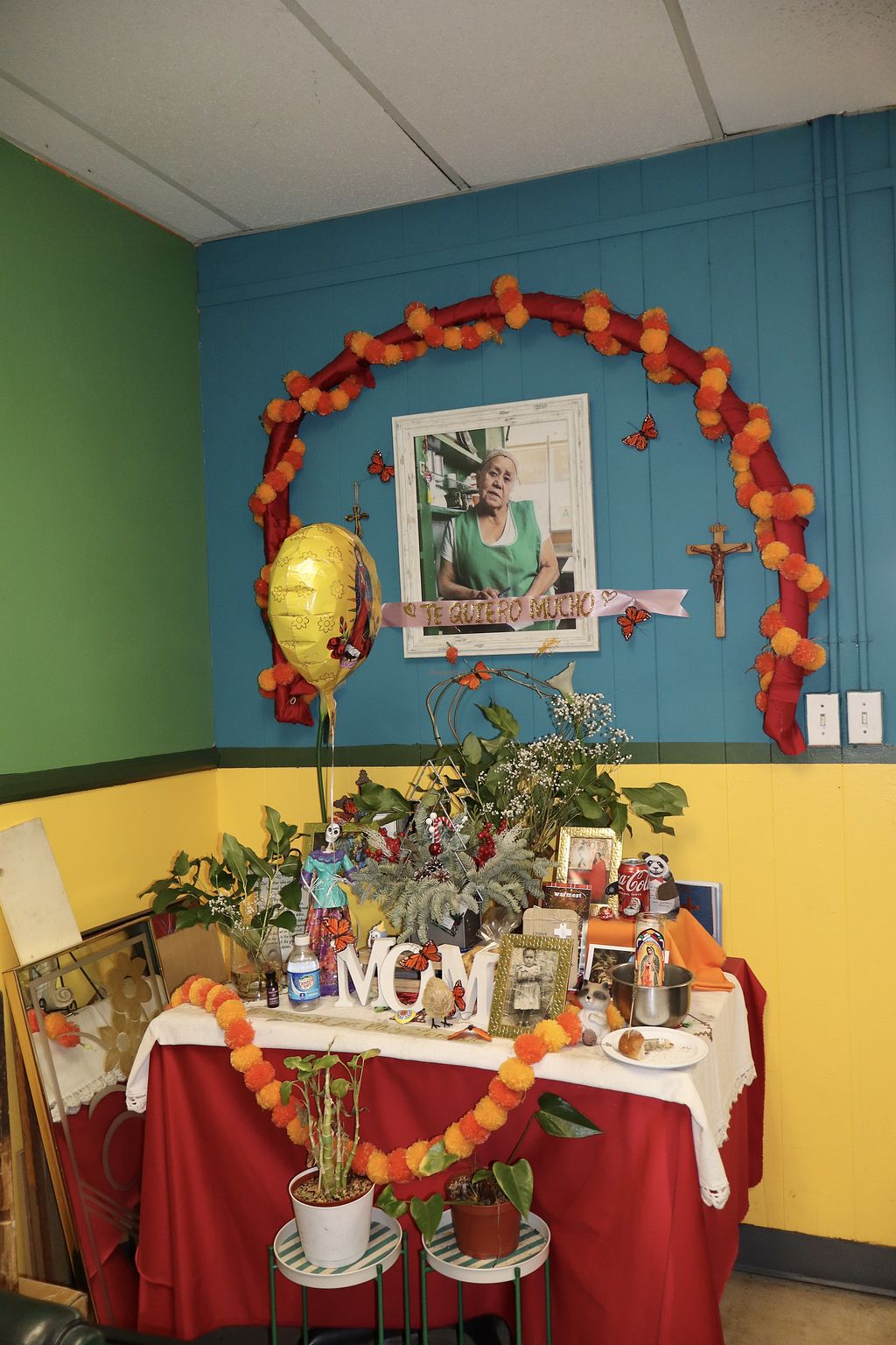 A beautiful ofrenda resides in the main dining area of their restaurant of Leonor.