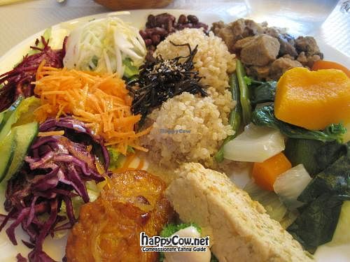 As others have said, the menu is basically meat substitute (or fish) with rice / grains and salad / raw veg / (very well) boiled veg. The only choice is which meat substitute (seitan / tofu / tempeh / all three) you want with which combination of veg / grains. And to be honest most options seem to include a little bit of everything anyway - the difference is just how much of it you get.