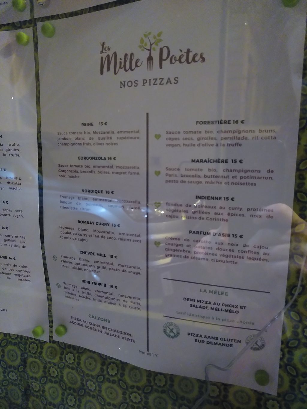 Menu pizza