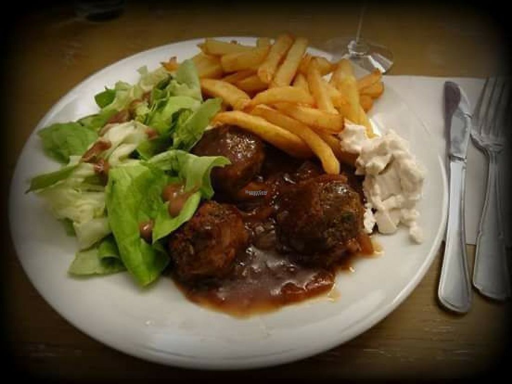 Boulets à la liégeoise (veg meatballs) with typical sauce of the regi…