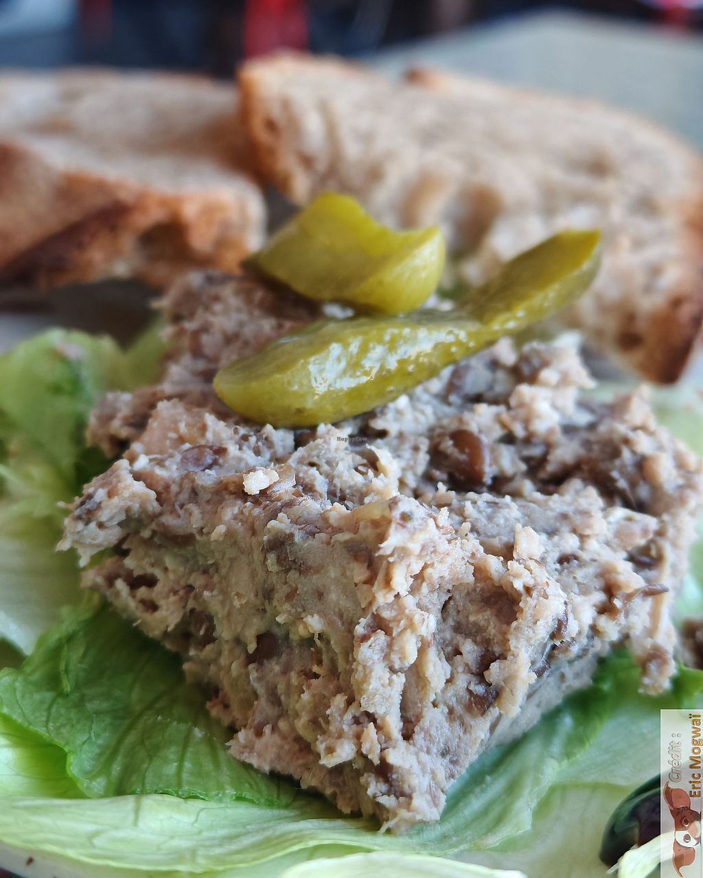 homemade vegetable terrine with slices of sourdough bread.