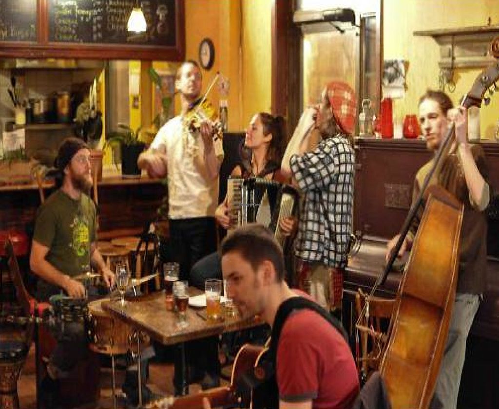 This is a gig venue, I went at 10pm on a Friday night, it was too busy to sit anywhere except at the bar. The food's very much secondary to the bar and the concert venue. I had the soup and pizza special of the day - it took about 40 minutes and was neither pleasant nor unpleasant, but it was so cheap it was practically free so it didn't really matter. Beer was cheap and plentiful too. The kitchen's open til 2am every night. You don't have to pay the cover for the band if you sit in the part of the bar where you can't see them. In short, a good option if you're out drinking in Le Village or the Latin Quarter - throw some cheap food in your face over a beer or three and then hit the town.