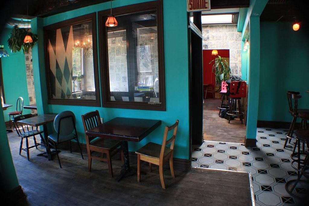 Without happycow, I would never have found this place (being up the stairs without an obvious sign). It looked a bit like a locals hangout but they were friendly to my non-french speaking tourist self. I went for lunch and had the special with a juice that was reasonably priced for Montreal and it was freshly cooked. The decor was eclectic and arty, with nice local music and wifi access, and I really enjoyed the whole ambience. It isn't fine dining, but the food was tasty. The only disappointment was the lettuce in the salad that needed a wash.