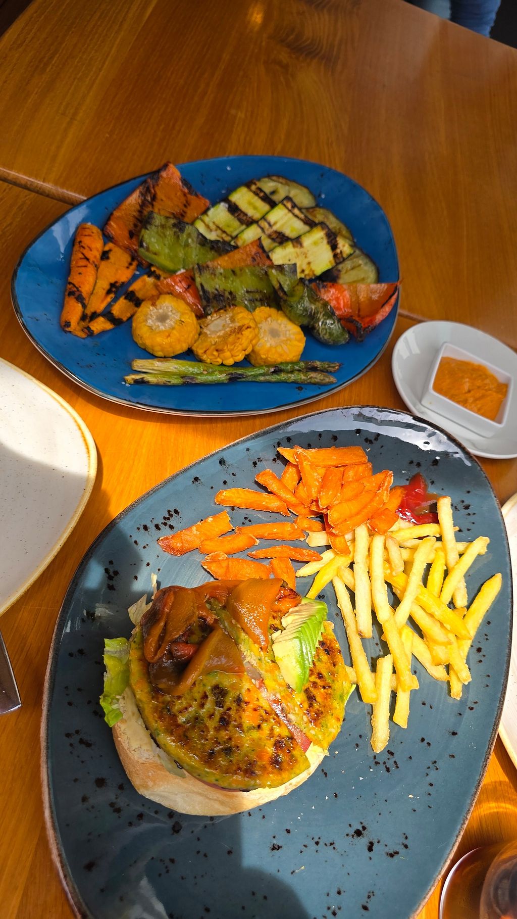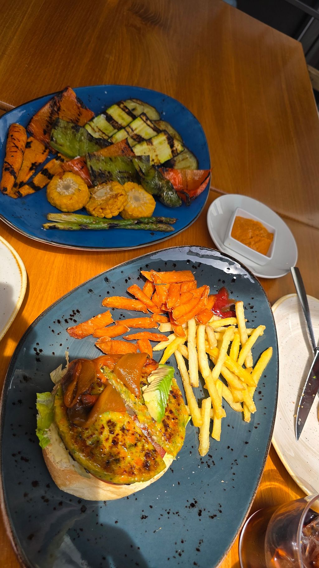 Had the gyozas and patatas bravas as a starter, and grilled vegetables and vegan burger as main.