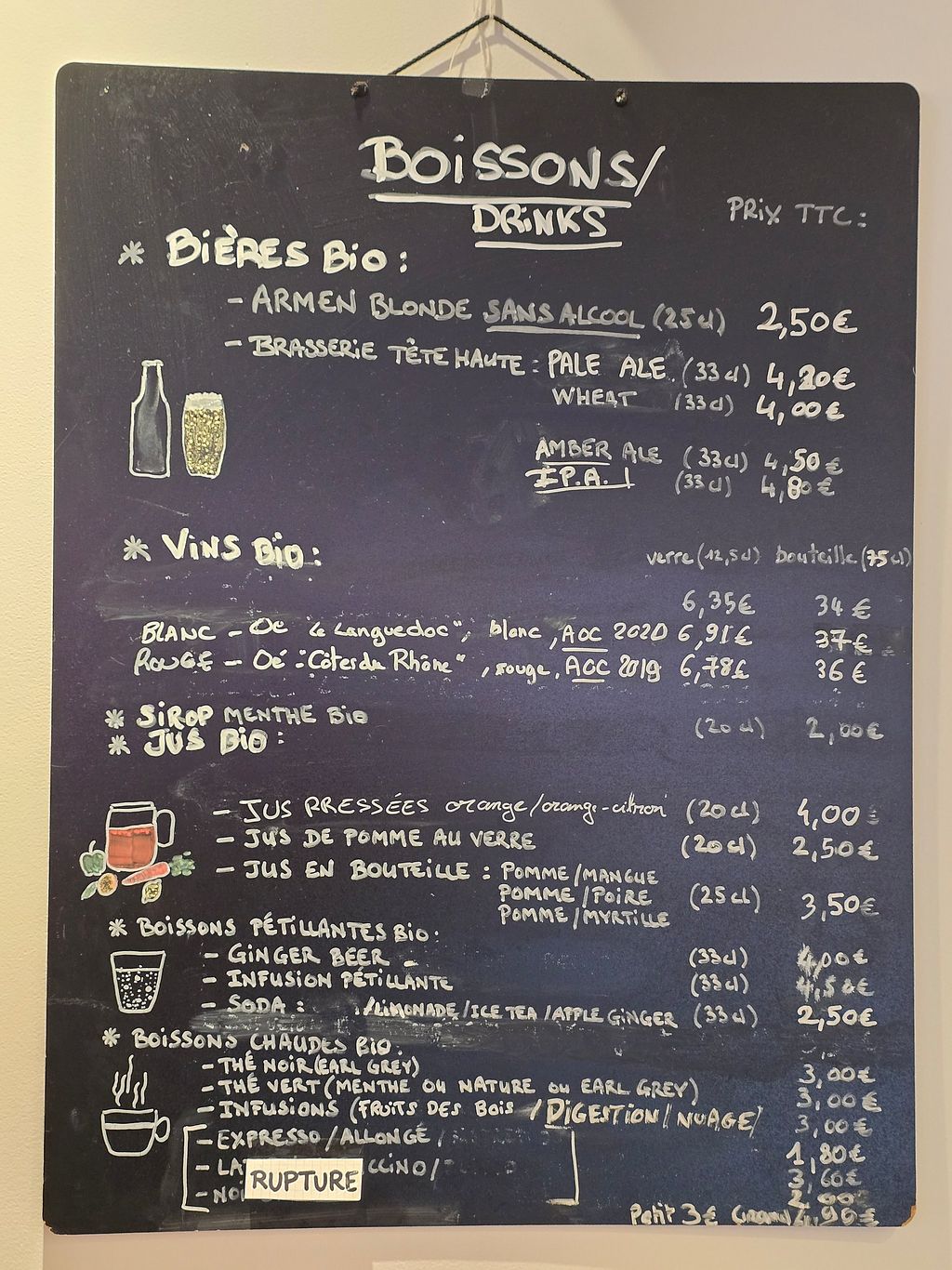 Drinks menu