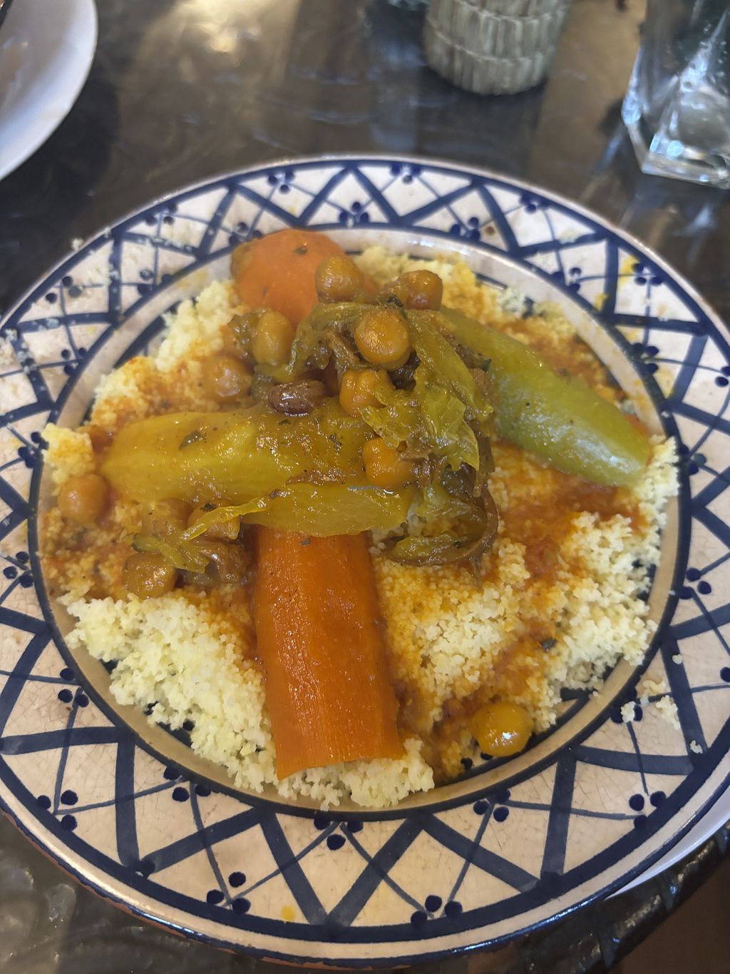 We ordered vegetable tagine and vegetable Briwattes. Was delicious and flavorful. Owner (I’m guessing) was very friendly and confident about vegetarian items!